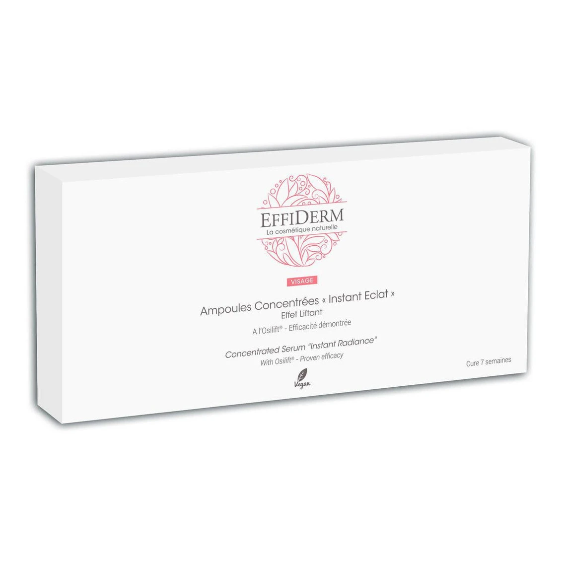 Les AMPOULES CONCENTREES INSTANT ECLAT agissent en estompant les signes de l’acirc;ge et en raffermissant la peau du visage. Ils offrent une peau visiblement liftée en une application. Ce produit atteste notamment d’une efficacité avérée pour tendre la peau située sur le contour des yeux et, ainsi, faire disparaitre les pattes d’oie.