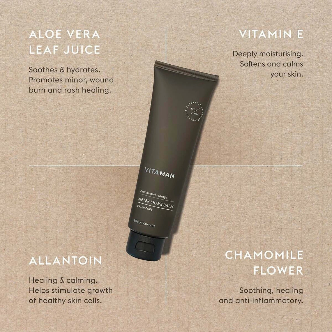 Le BAUME APRÈS RASAGE VITAMAN élimine toutes les irritations, rougeurs ou tiraillements liés au rasage. Il laisse une peau douce, hydratée et sans douleur.