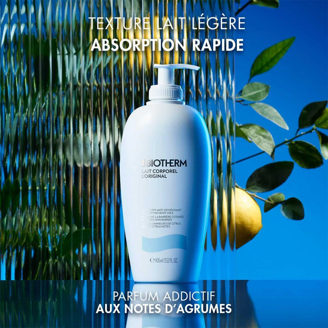 Le Lait Corporel Anti-Desséchant – Aux Essences D’agrumes de Biotherm est un lait corporel quotidien qui aide instantanément la peau à retrouver son apparence douce et satinée. Délicieusement fluide et merveilleusement frais, il réhydrate et compense le dessèchement cutané, reconstitue la barrière protectrice de la peau tout en préservant son élasticité naturelle. Ce lait non gras pénètre facilement pour rendre la peau fraîche et parfaitement hydratée.
