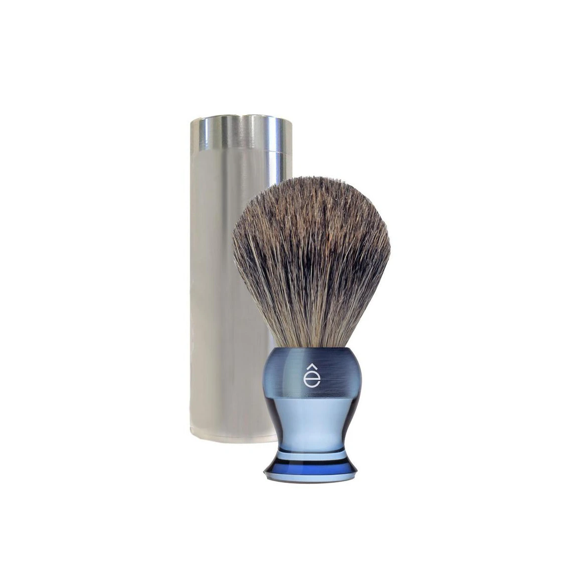 Ce blaireau de voyage fait main de la marque eShave offre élégance, qualité et délicatesse avec un design moderne et de véritables poils de blaireaux.