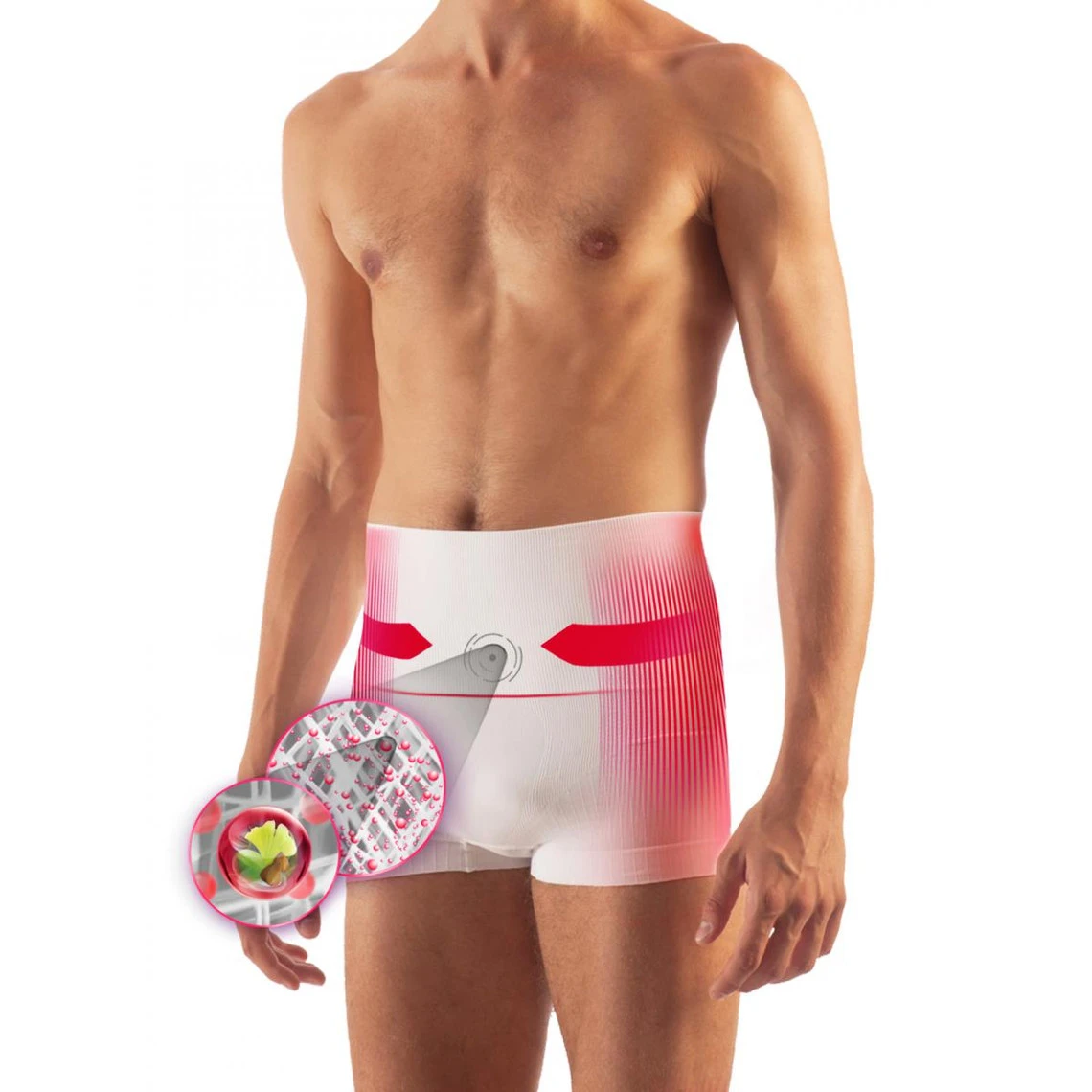 Ce boxer présente une coupe moulante pour mettre en valeur la silhouette. Son tissu extensible souligne le corps telle une seconde peau. Ce modèle se caractérise par sa ceinture élastiquée effet ventre plat. Le tissu se compose de formule cosmétique à base de caféine et de beurre de karité encapsulés afin de cibler les bourrelets au niveau du ventre, de la taille et des hanches.