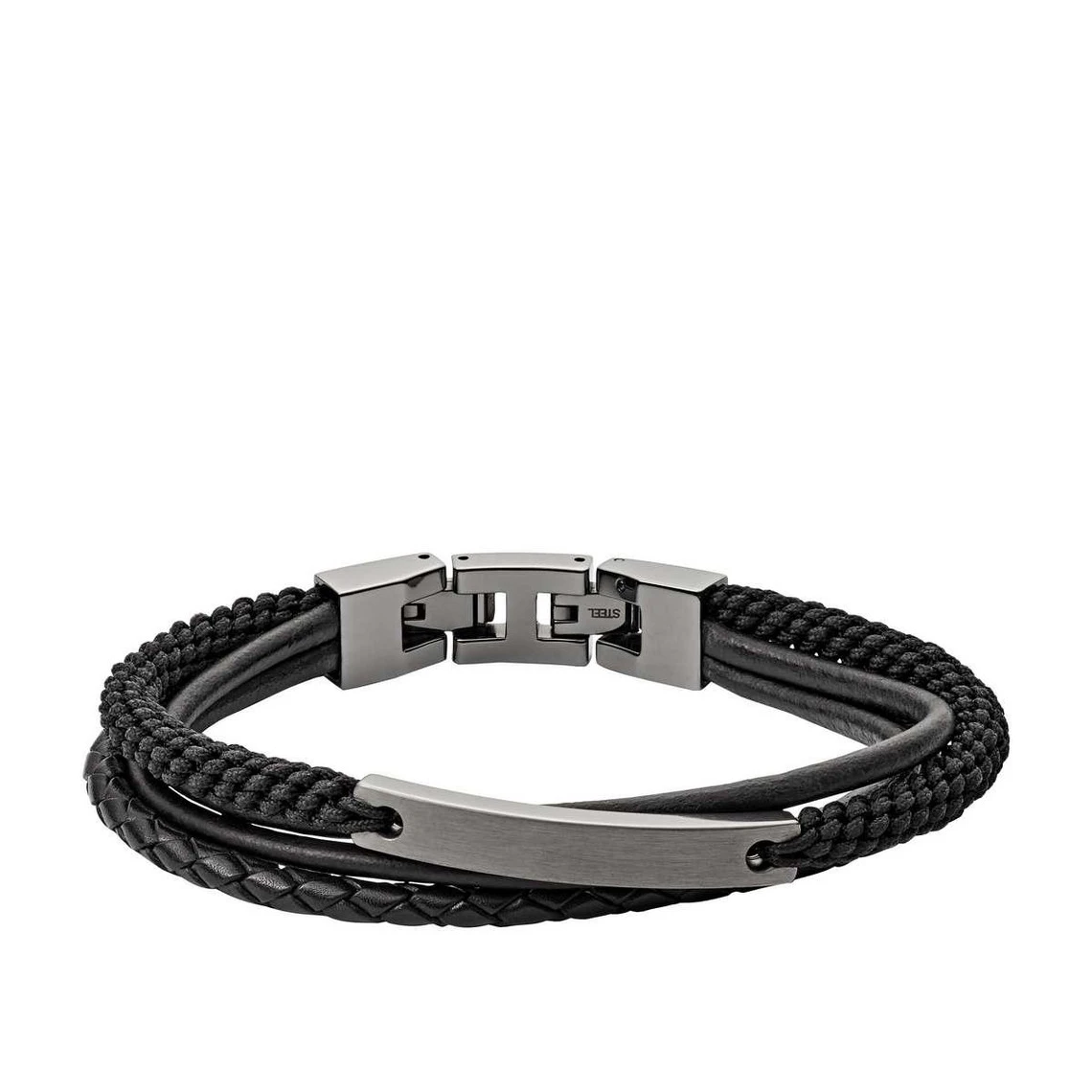 Succombez pour le charme de ce Bracelet Homme Fossil Bijoux Acier Gris. De style vintage, il est composé de quatre cordons dont l’une se dote d’une plaque brillante en acier. Son fermoir boitier vous permet de l’accrocher facilement à votre poignet.