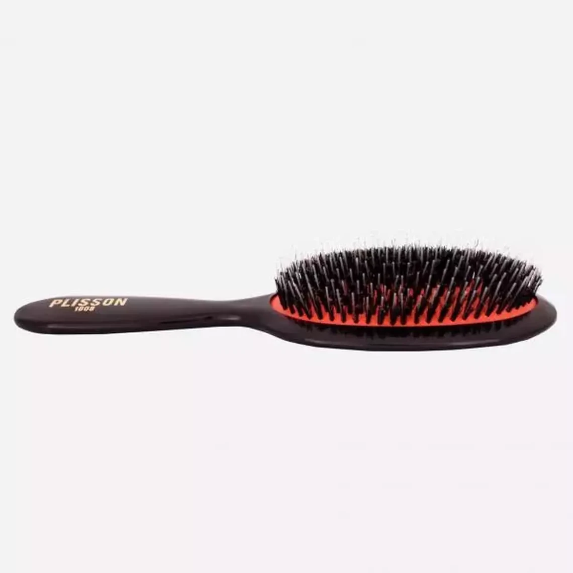 Pour démêler facilement vos cheveux, misez sur cette Brosse Noire En Poils De Sanglier Et Nylon Grand Modèle de chez Plisson. Alliant des picots en nylon et des poils de sanglier, elle lisse en douceur les cheveux tout en massant délicatement le cuir chevelu.