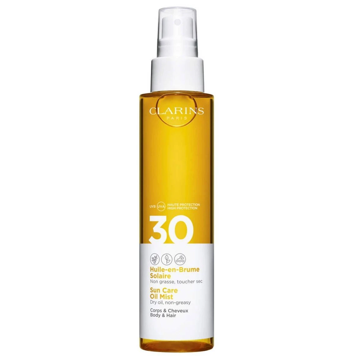 La Crème solaire brume corps et cheveux de la marque Clarins est l’alliée parfait pour les journées au soleil: protection garantie