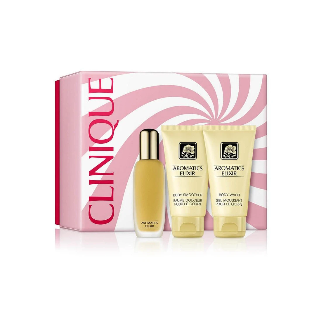 Ce coffret contient un assortiment de produits de la gamme Aromatics Elixir pour une peau saine, douce et parfumée au quotidien.