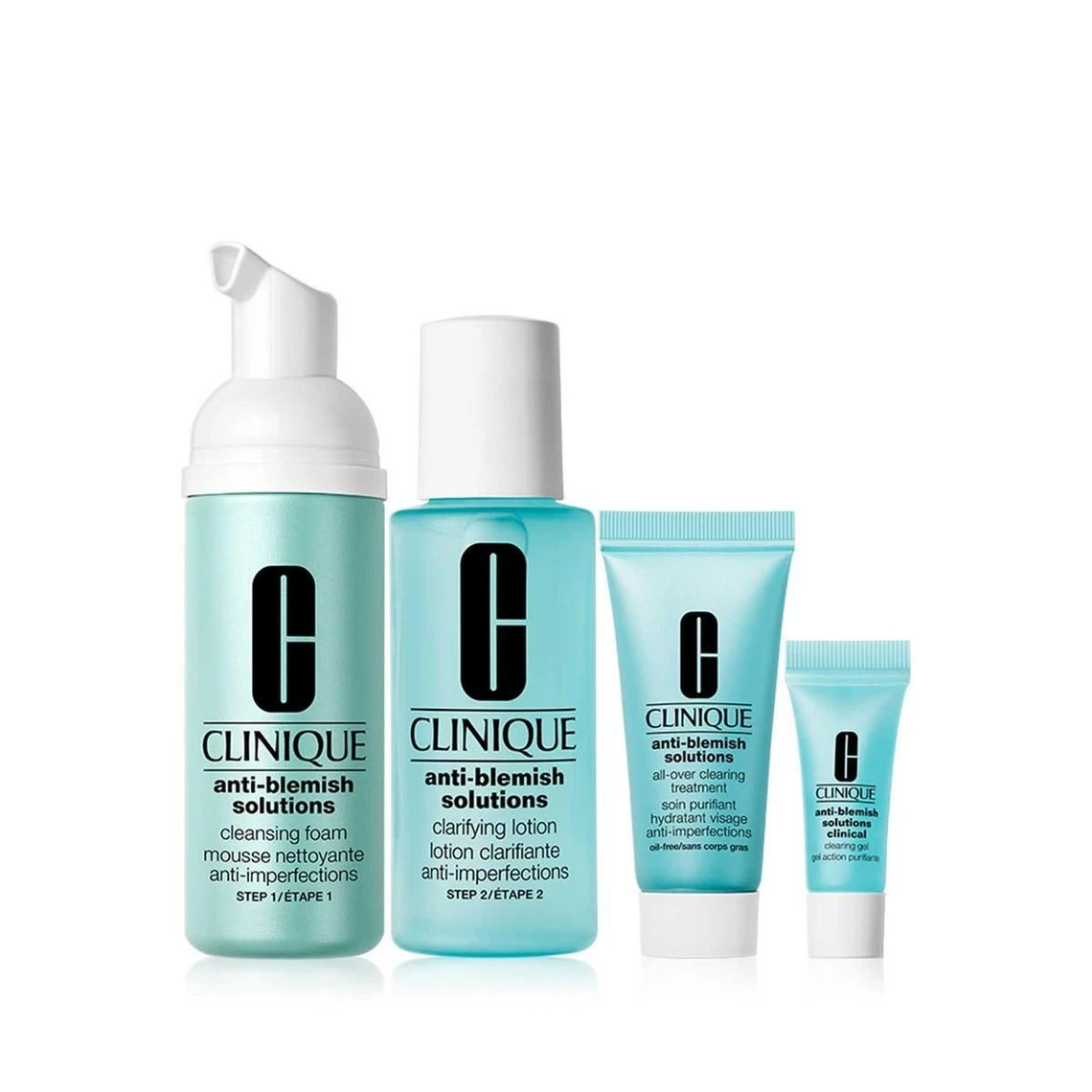 Tous les soins anti imperfections indispensables au quotidien sont regroupés dans le Kit Découverte Anti-Blemish™ de Clinique. Déclinés au format voyage, les produits vous accompagnent partout dans vos déplacements. Pour vous garantir une mine radieuse et un teint sans défaut en toute circonstance.