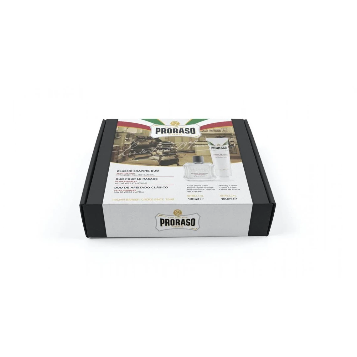 Le Coffret Duo Proraso Crème à Raser + Baume Après Rasage pour les Peaux Sensibles fournit tous les soins indispensables pour réaliser un rasage précis et doux chez vous. La crème de rasage adoucit efficacement la peau pour la préparer au passage du rasoir et limiter les irritations. Le baume restitue la qualité de la peau après le passage du rasoir.