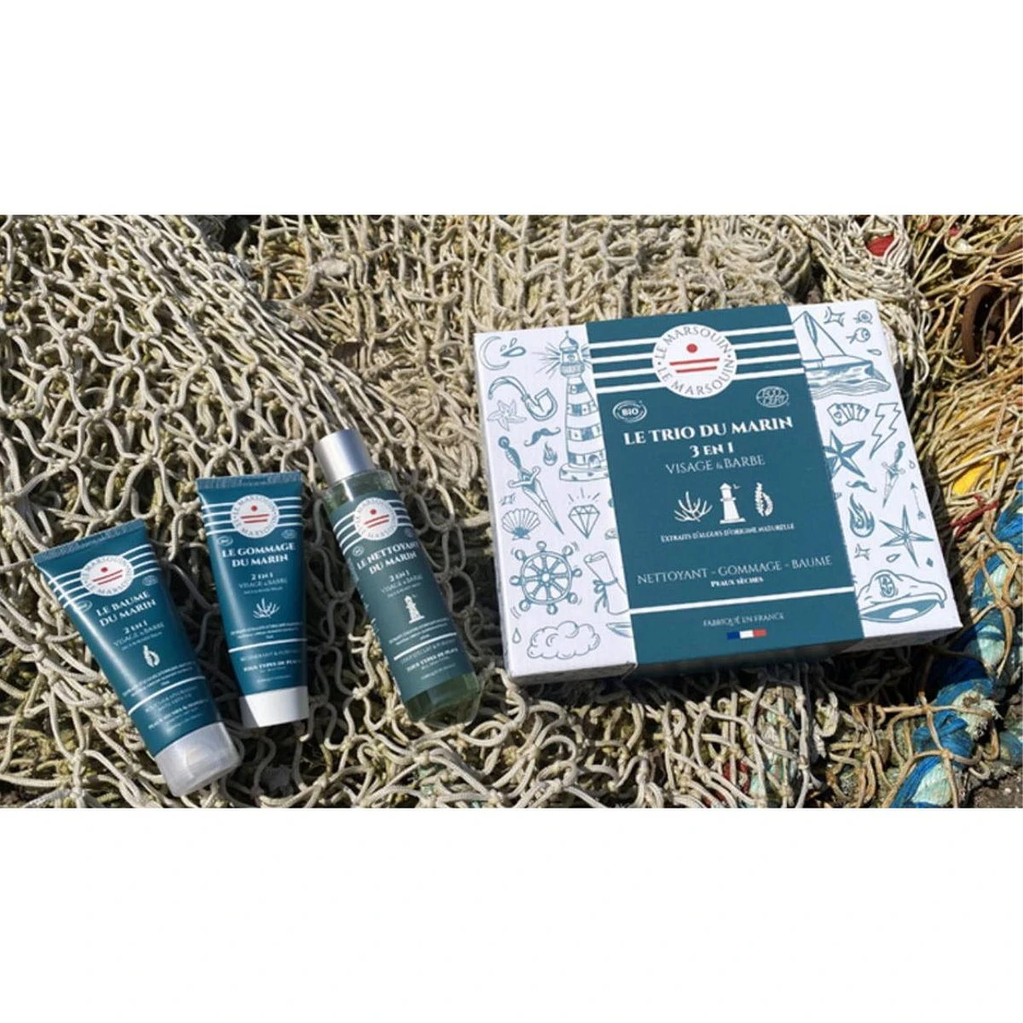 Contenu du coffret : Le Nettoyant du Marin est l’allié idéal pour purifier et nettoyer efficacement la peau et la barbe en douceur tout en maintenant un haut niveau d’hydratation. Il est composé de différents actifs marins. Ce gommage agit comme un soin régénérant et purifiant pour toutes les peaux même les plus sensibles. Il redonne éclat et douceur au visage grâce à ses 3 actifs marins. Le Baume du Marin 2en1 est un concentré d’hydratation naturelle pour le visage et nourrissant pour la barbe. Adapté à tous les types de peaux, même les plus sensibles (testé sous contrôle dermatologique), il est composé d’actifs marins uniques tout droit venus des côtes bretonnes.