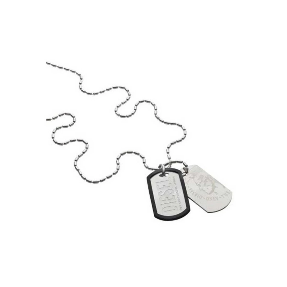 Mettez votre style en valeur en adoptant ce Collier et pendentif Diesel DX0011040 – Homme qui porte une longue chaîne stylée. Le duo de plaques militaires qui lui sert de pendentif est conçu avec de l’acier inoxydable de couleur argenté.