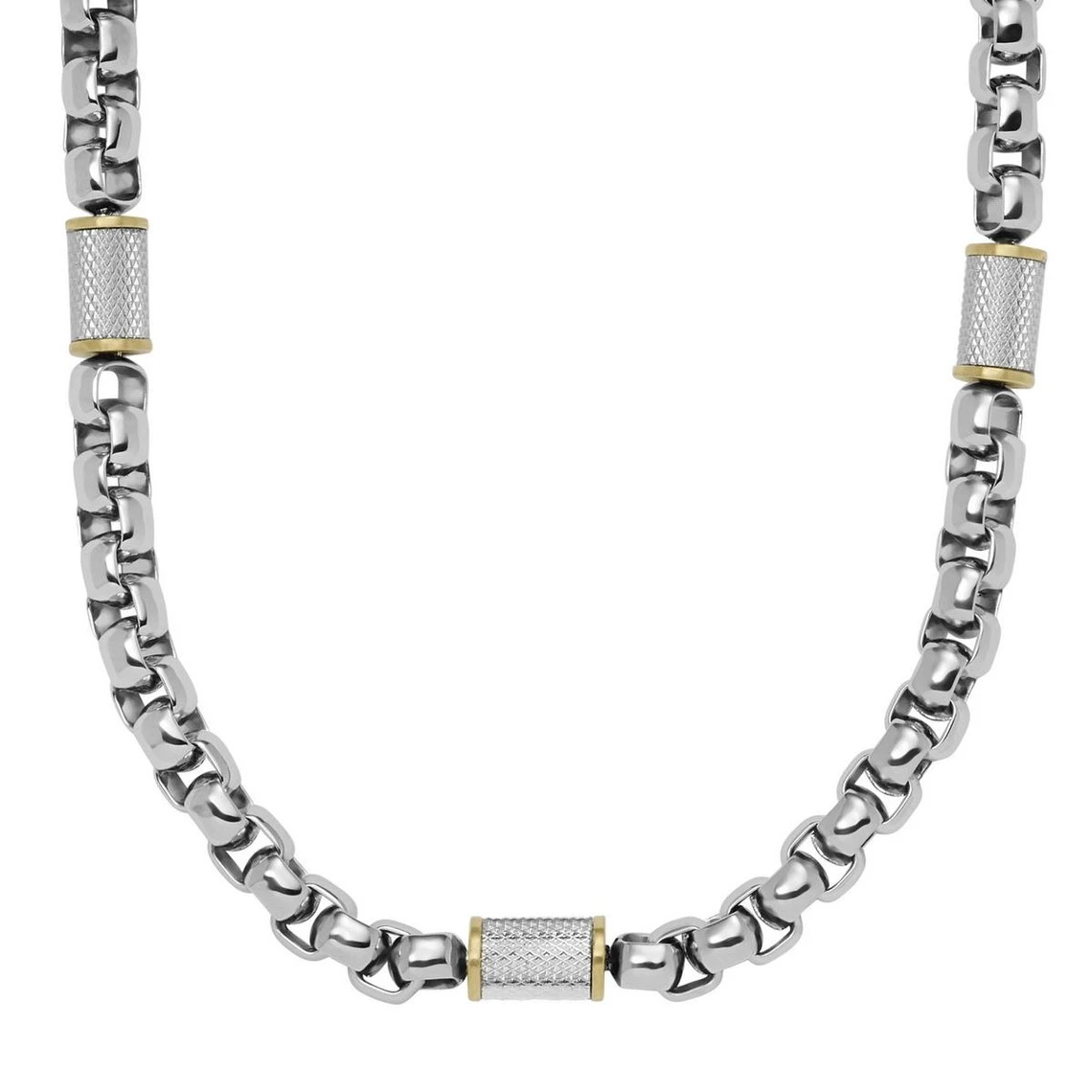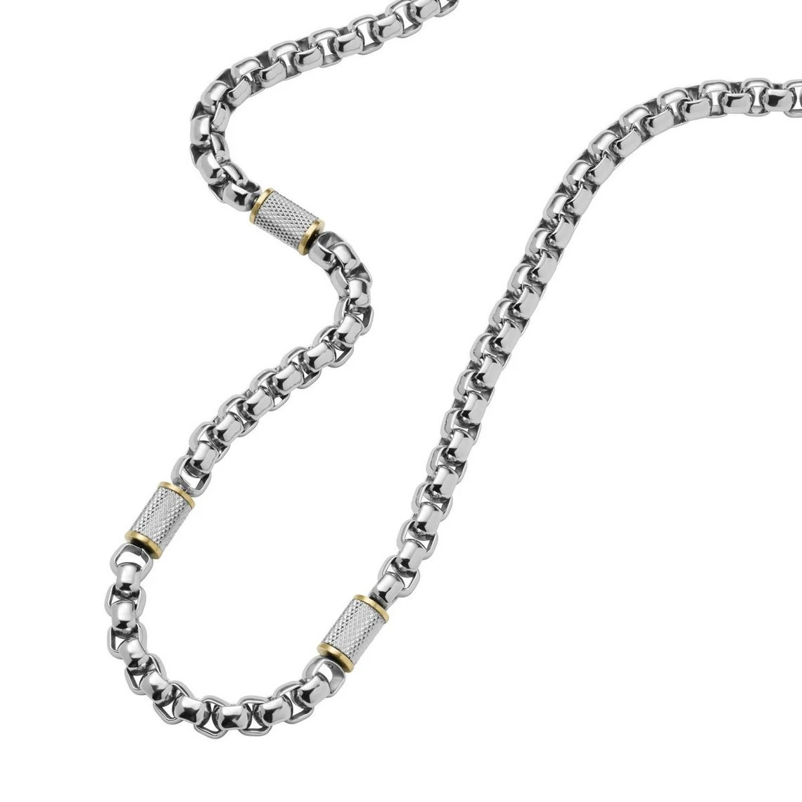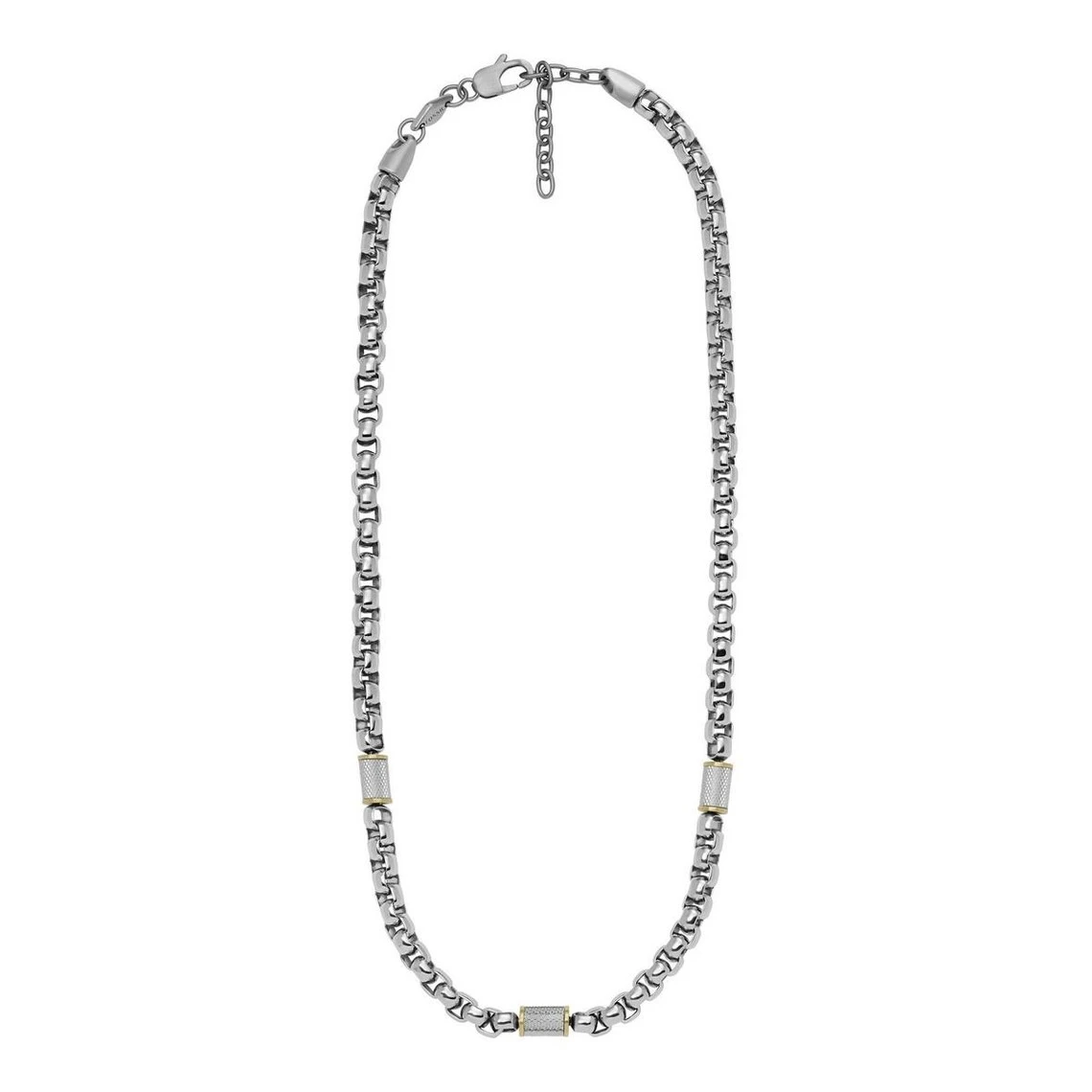 Adoptez un look décontracté et chic en portant ce Collier Homme JF04145998 en acier de chez Fossil. Simple et élégant, il se démarque avec ses cylindres striés et sa chaîne imposante en maille vénitienne. Ajustable, il est doté d’un fermoir mousqueton.