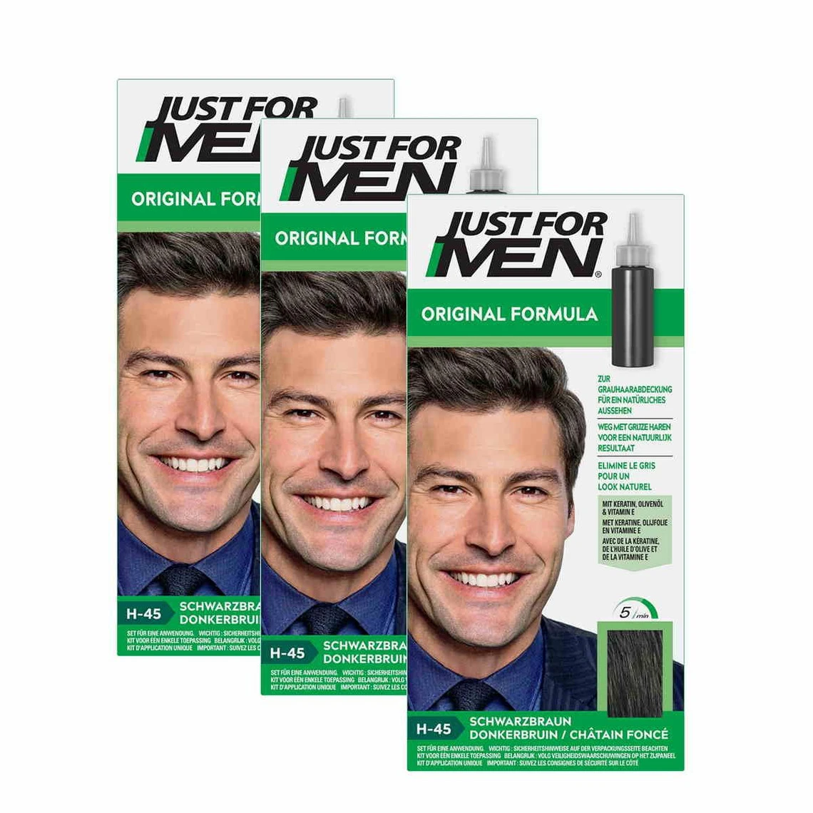 Retrouvez dans ce pack 3 COLORATIONS CHEVEUX Just For Men qui vous donnent la couleur que vous souhaitez en 5 minutes. Leur formule exclusive True Color cible uniquement les cheveux gris et vous donne une couleur naturelle. Sans ammoniaque, ce pack de coloration châtain respecte vos cheveux.