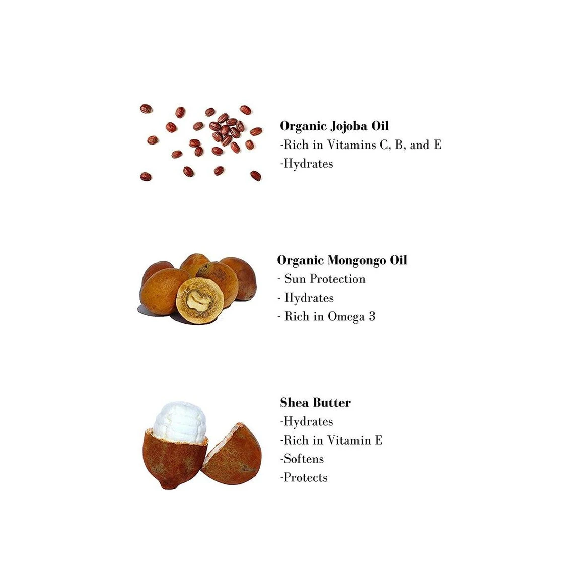 – Le Beurre de karité et l’Huile de Jojoba hydratent et coiffent la chevelure
