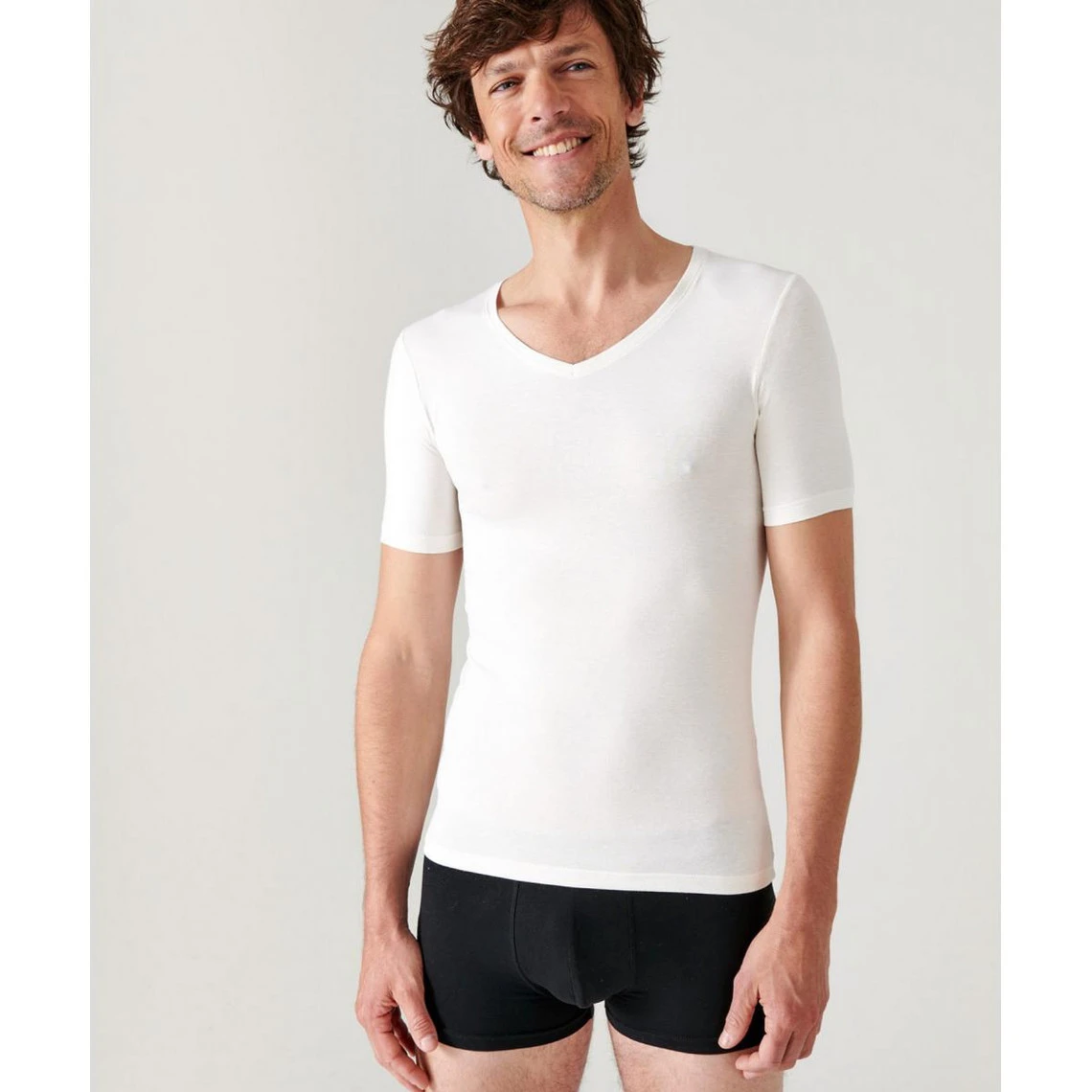 La gent masculine va trouver son bonheur avec ce Tee-shirt Manches Courtes Ecru. Ses manches courtes, son encolure en V et sa couleur écrue en font un modèle indémodable.