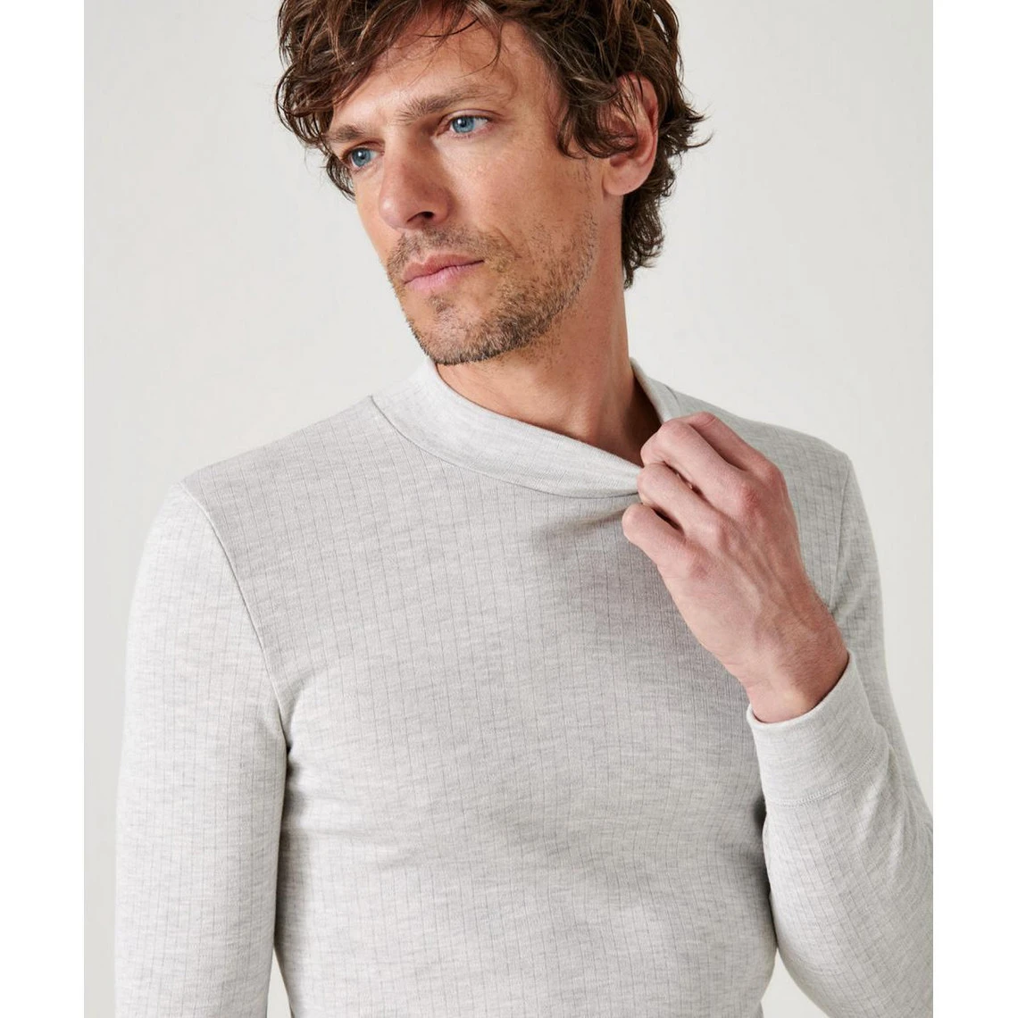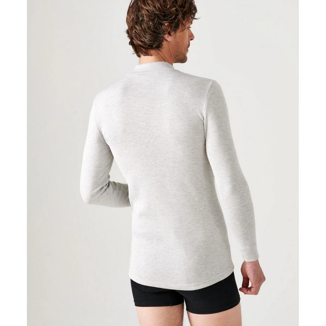 Ce Tee Shirt Manches Longues Col Montant Gris Chiné est une pièce masculine à la fois simple et de bonne qualité. Son coloris gris clair chiné est très tendance.