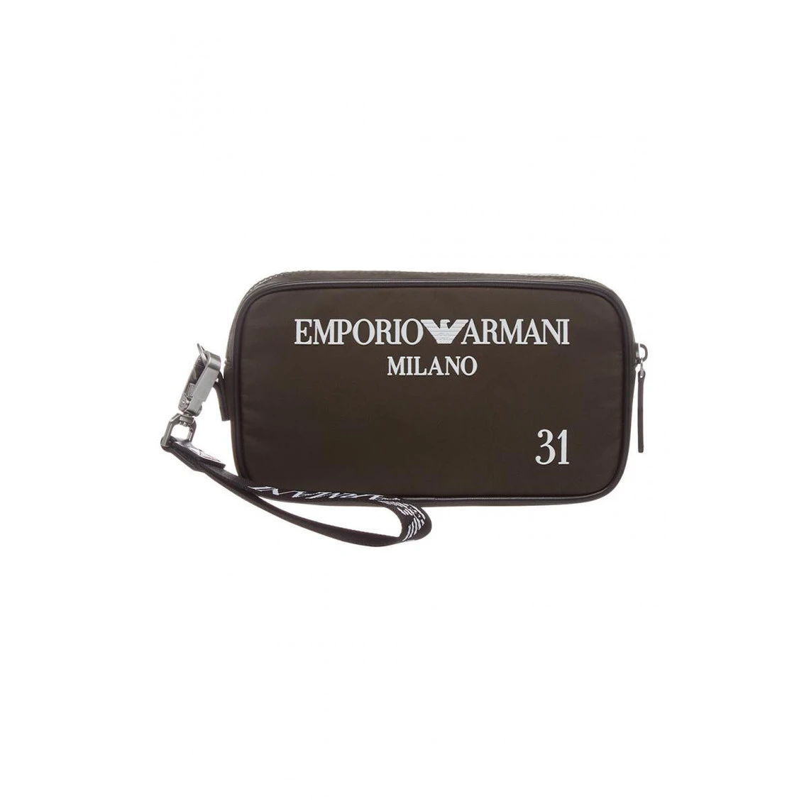 Gardez vos essentiels dans cette Pochette logo imprimé verte pensée par Emporio Armani lors de vos voyages. Pratique, elle est compacte et dispose d’une poche capable de recevoir certains de vos indispensables. En fibre synthétique, elle est résistante à souhait.