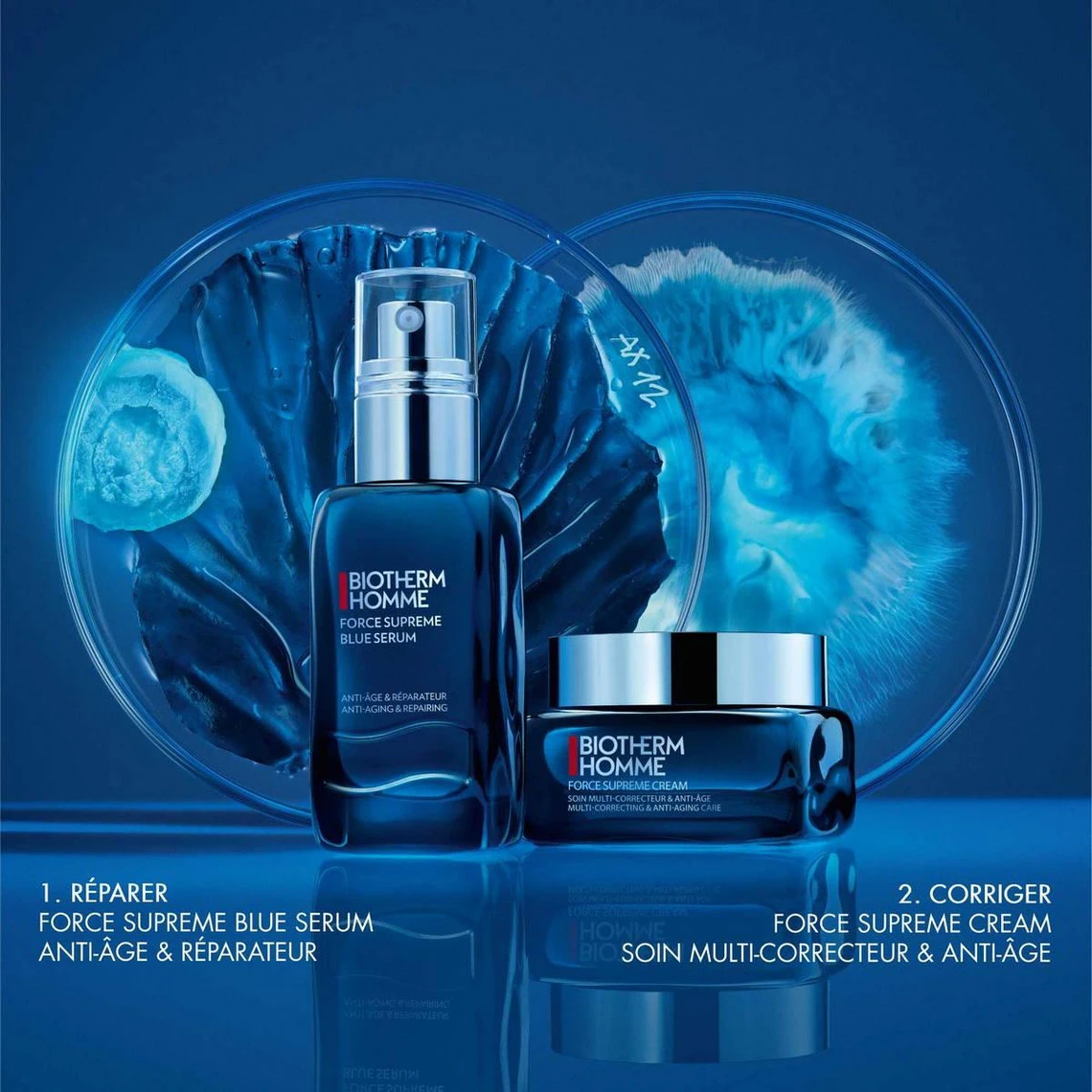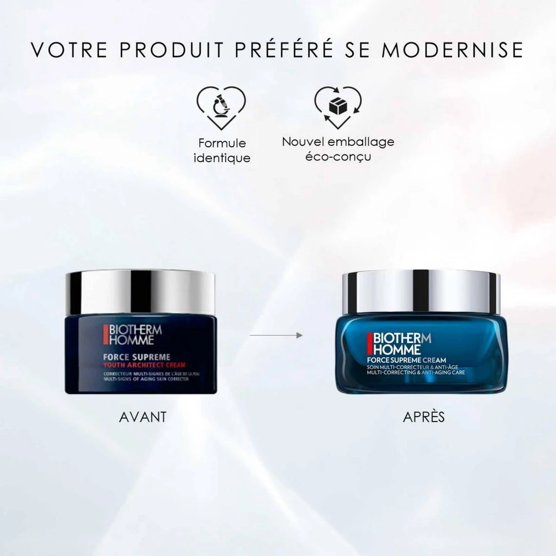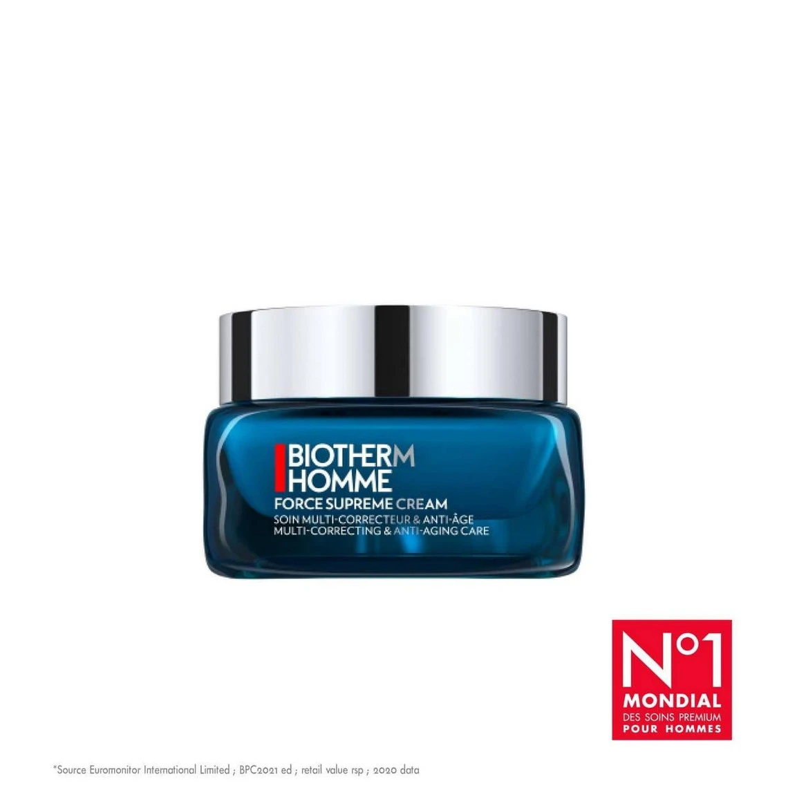 Biotherm Homme Force Suprême Youth Reshaping Cream 50 ml est un soin correcteur multi-signes de l’âge à base d’extrait d’algue de jeunesse et de pro-xylane.