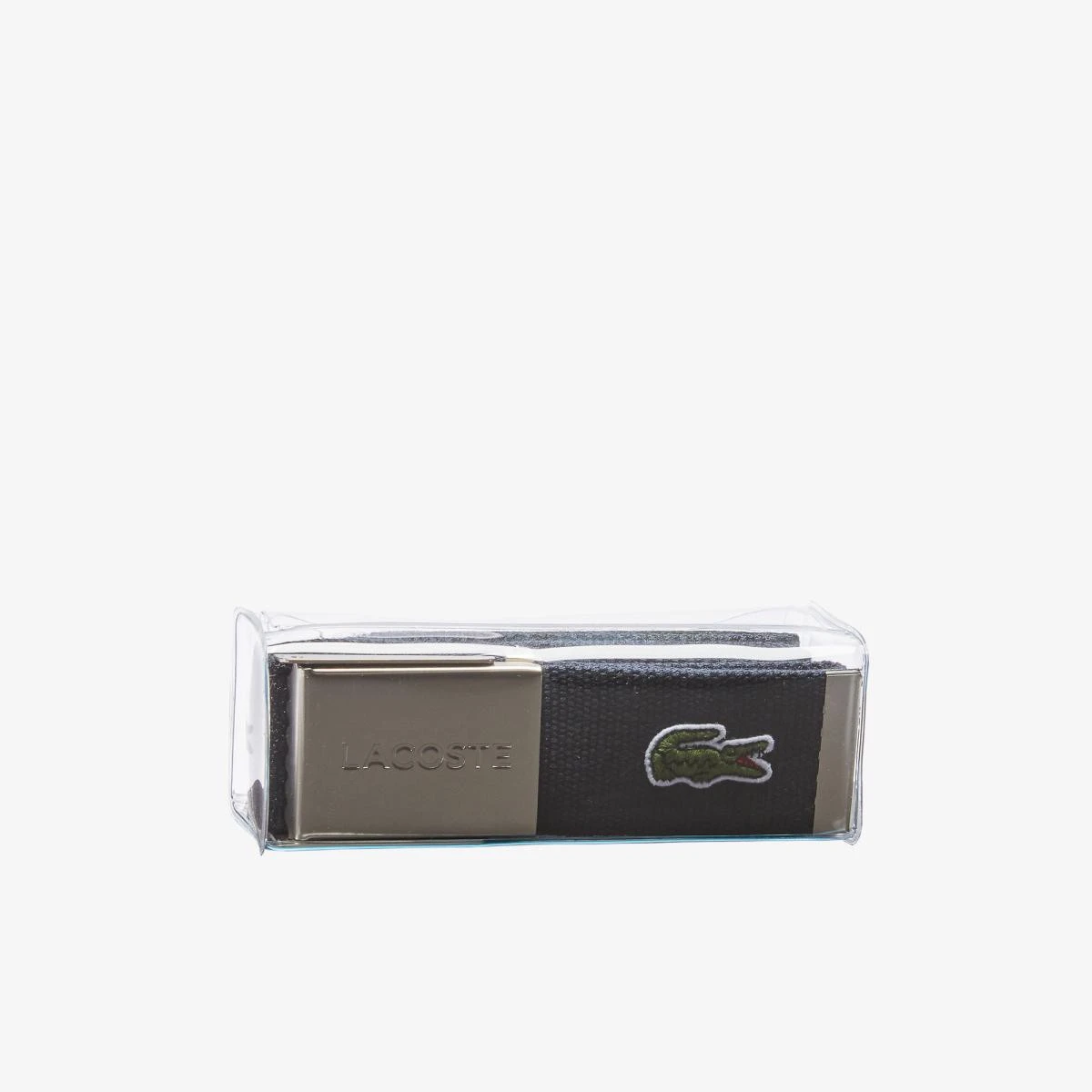 – Boucle plaque en acier mat avec gravure Lacoste