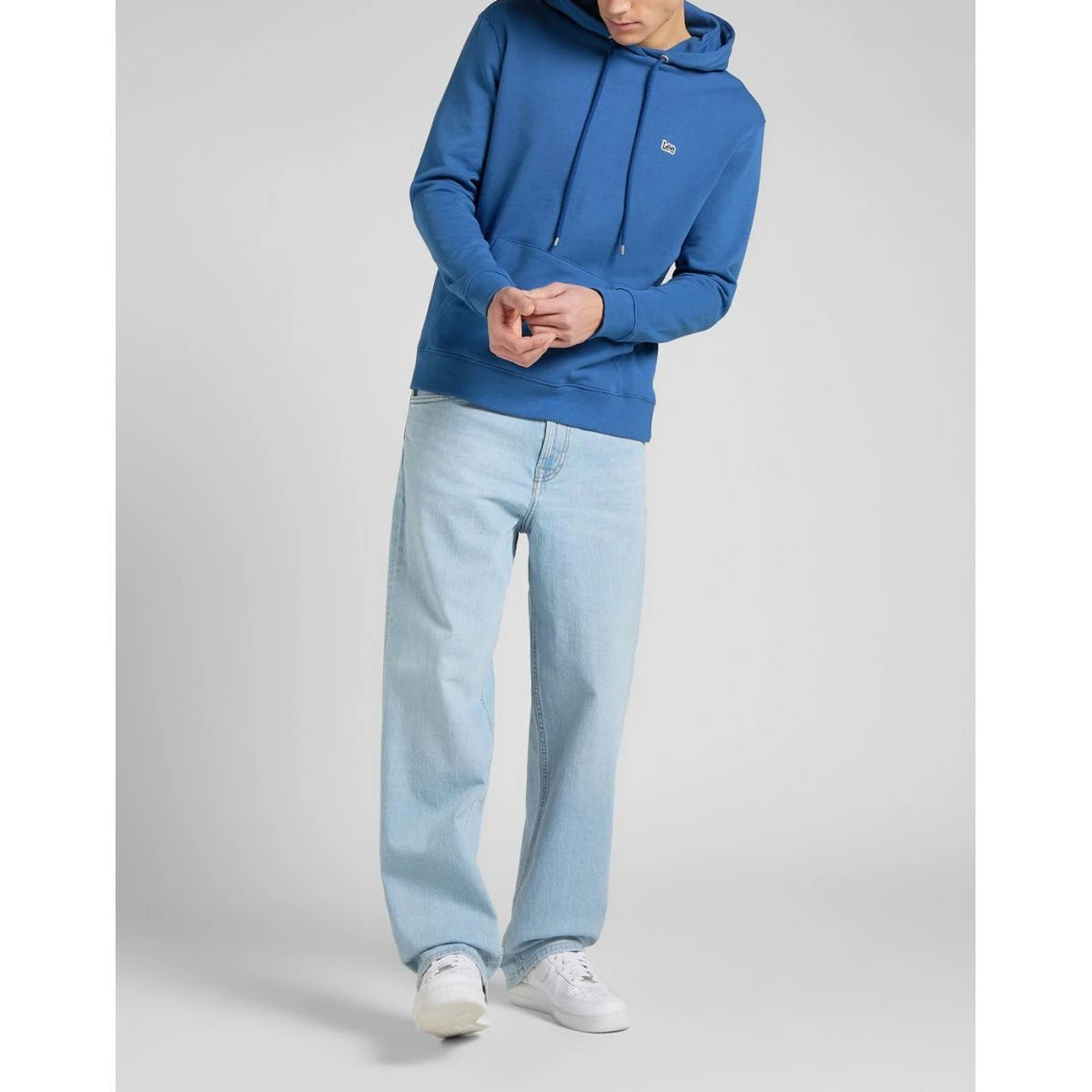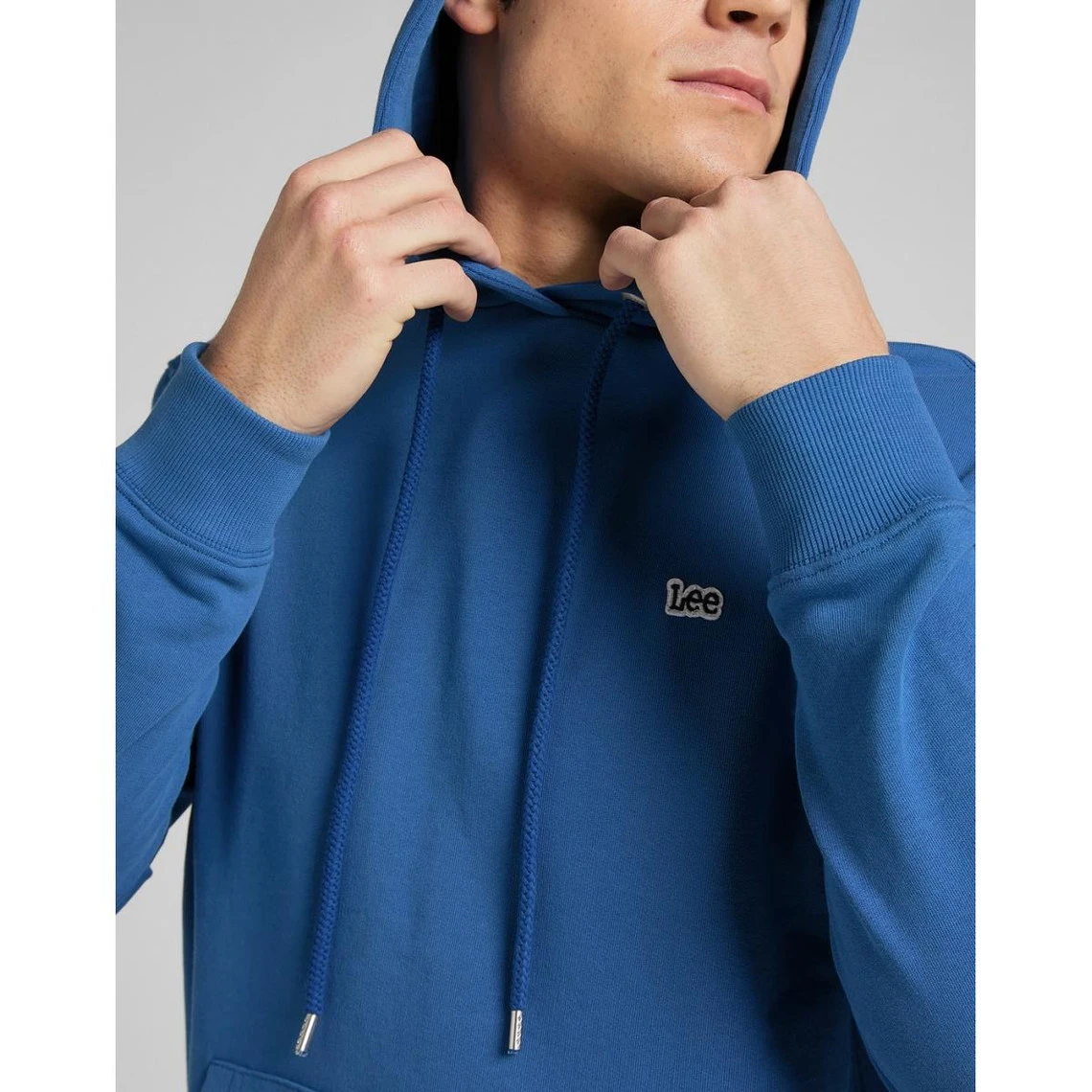 Détails : capuchon avec œillets métalliques et cordon de serrage, logo brodé poitrine gauche, bordures manches et taille côtelées, poche kangourou