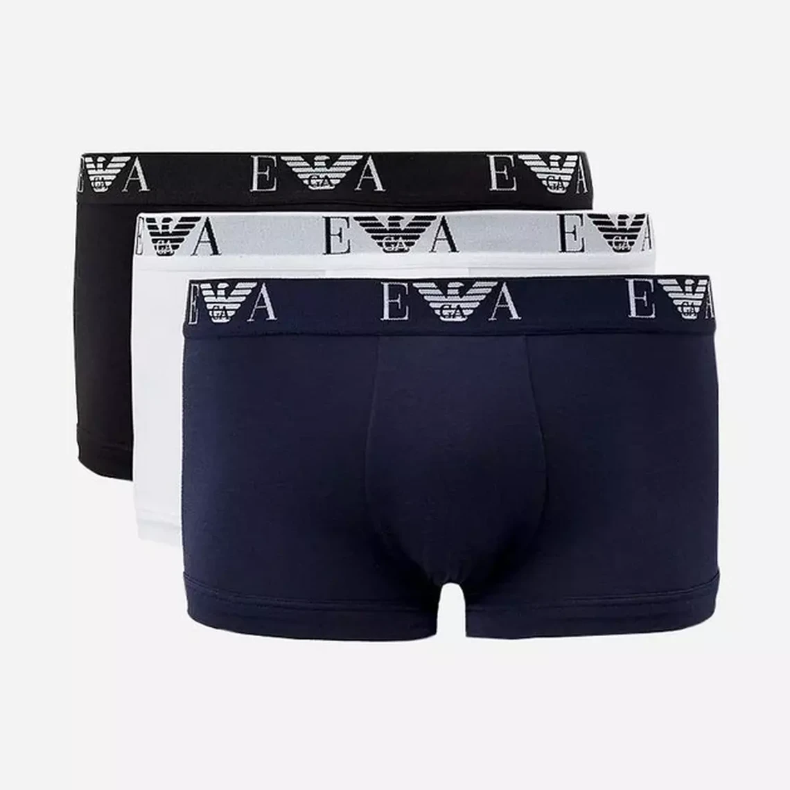 Adoptez vite ce LOT DE 3 BOXERS en coton stretch de la marque EMPORIO ARMANI, des boxers très doux et confortables à porter et à la ceinture élastique siglée très chic!