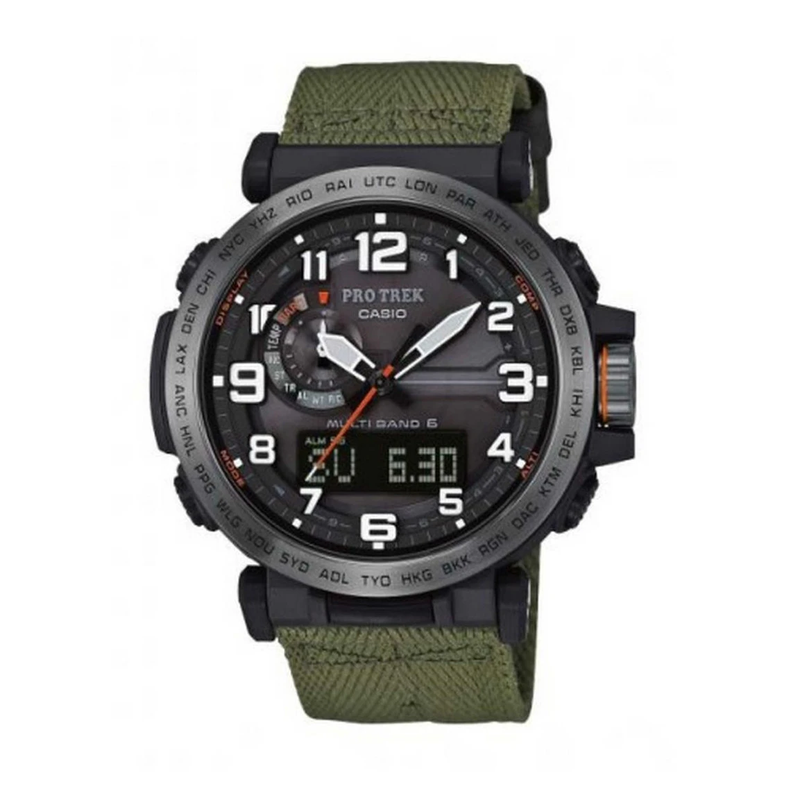 Parmis les différentes collections que proposent Casio, la collection ProTrek est de loin l’une des plus performantes qui soit. Voici la montre Casio Protrek PRW-6600YB-3ER pour Homme. Cette montre se décrit sous la forme d’un boitier en résine de couleur noir. Ce boitier s’associe à un bracelet en nylon vert. Un design simple et sportif qui va mettre en avant les multiples fonctionnalités de la montre. Tout d’abord, sur son cadran, des capteurs solaire permettent de recharger une batterie solaire d’une excellente qualité. Vous pourrez ainsi allez explorer des paysages désert en étant accompagner d’un thermomètre, d’une boussole, un altimètre ou encore une alarme. Une montre Casio dessiné et construite pour les plus aventuriers d’entre vous.