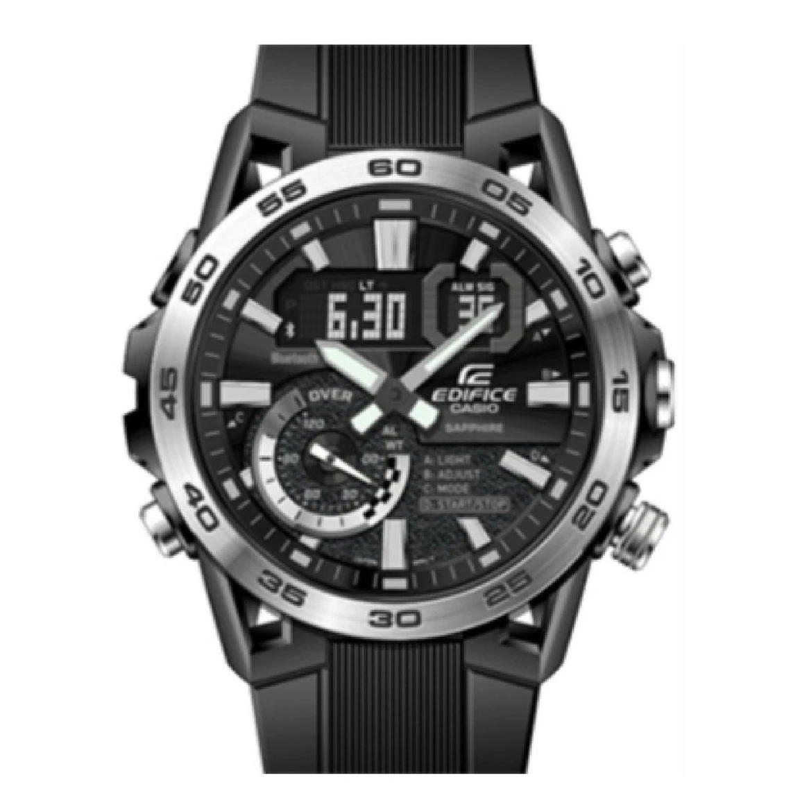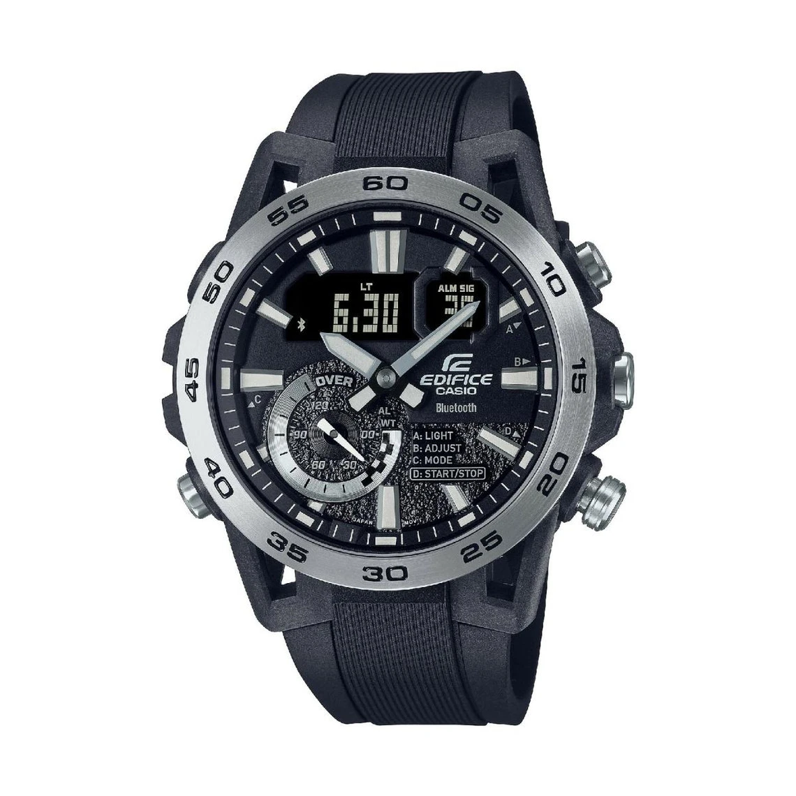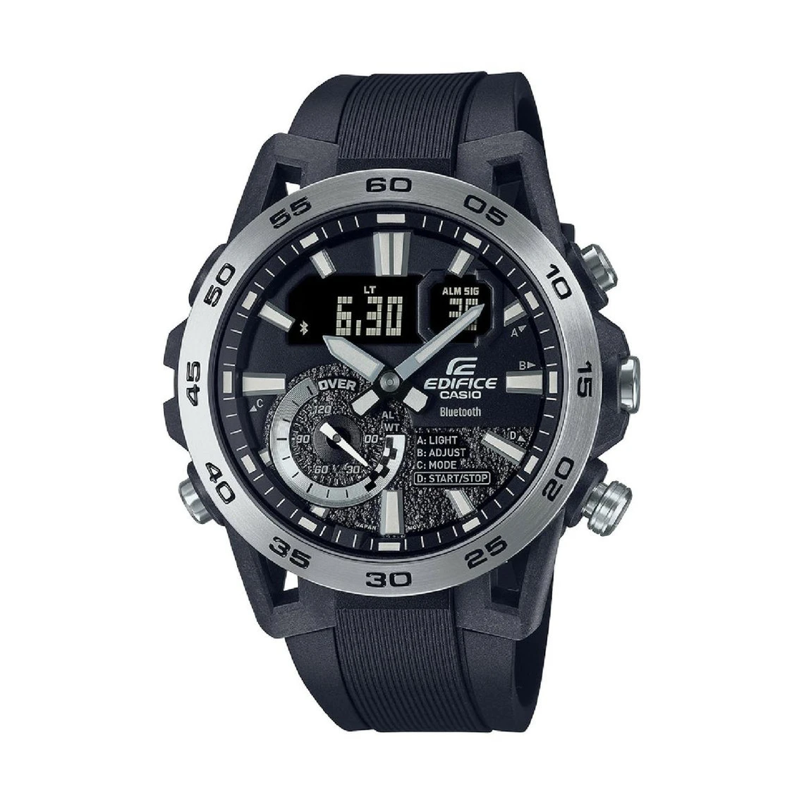 La Montre Homme CASIO ECB-40P-1AEF – Bracelet résine Noir fait partie de la collection EDIFICE. Elle plaît pour son cadran ana-digital qui rappelle le tableau des voitures de courses. Son boîtier en acier argenté associé au bracelet en résine imposant donne un aspect moderne et viril à ce bijou horloger. Équipée de plusieurs fonctionnalités, c’est l’accessoire idéal à porter au quotidien.