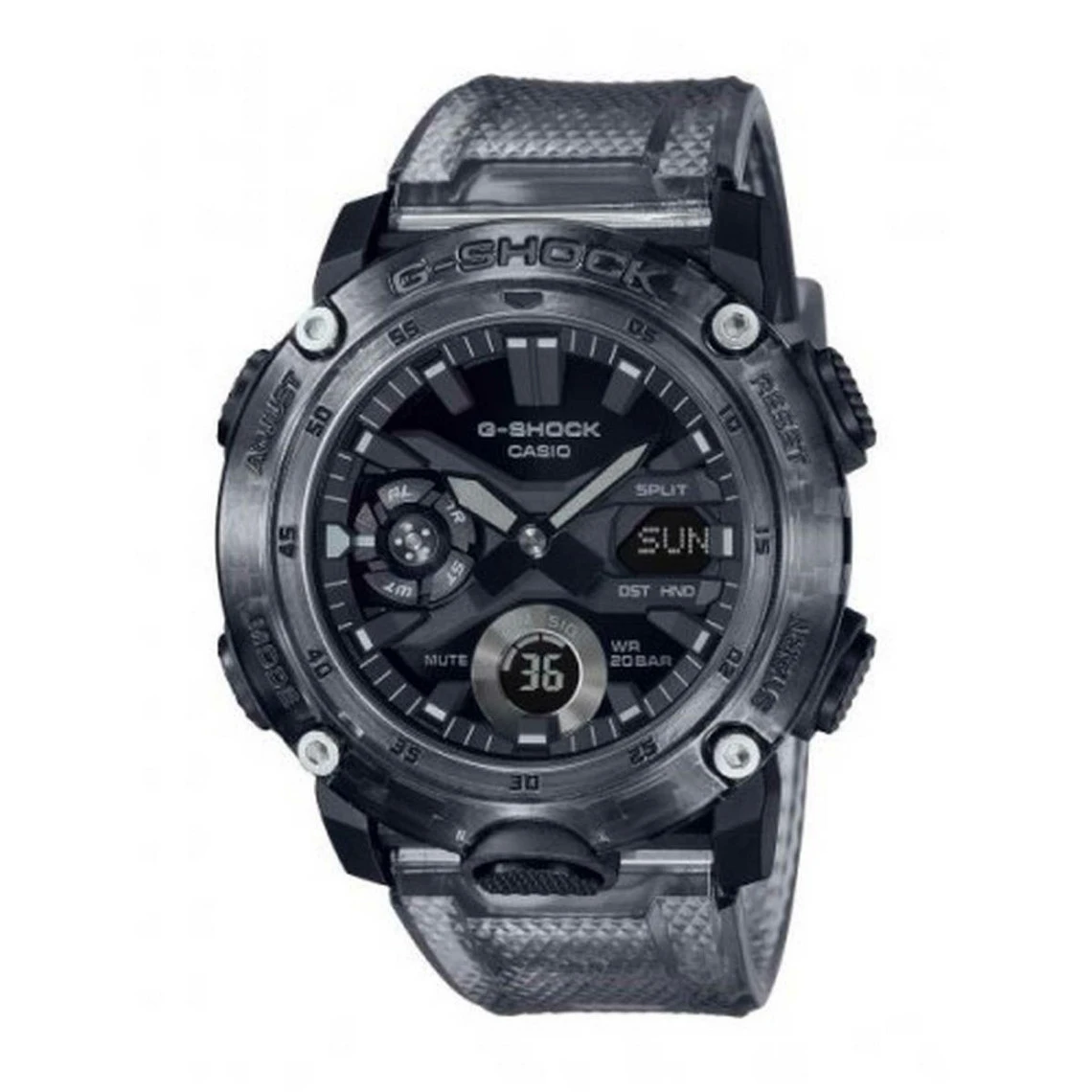 La Montre Homme CASIO GA-2000SKE-8AER – Bracelet Résine Blanc est d’une solidité à toute épreuve. Elle est fournie avec un boîtier en résine renforcée en fibre de carbone. Son bracelet gris translucide dispose d’une résistance aux chocs et aux rayures.