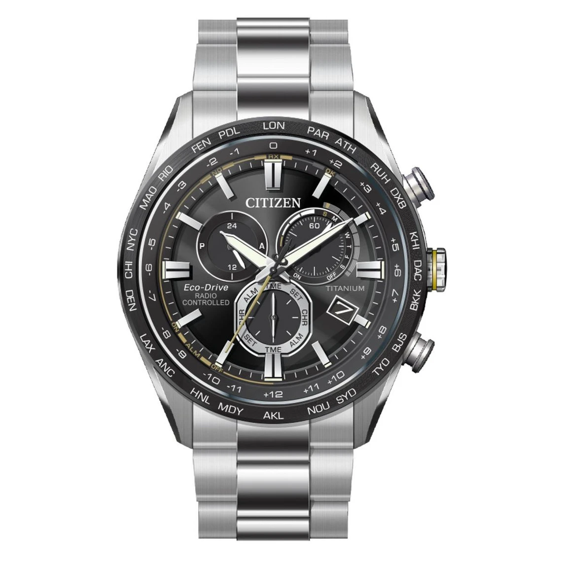 - Fonctionnalités: Dateur, Chronographe, Radio-pilotée, Conduite économique, Calendrier perpétuel, Horaire international, Indicateur de réserve de marche
