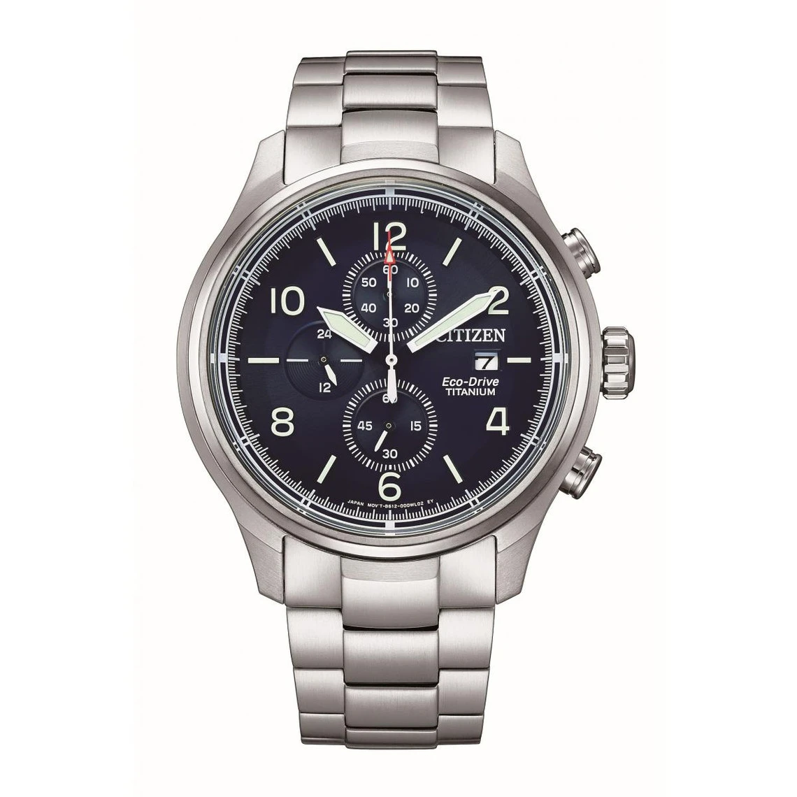 Cette Montre Homme CITIZEN SUPER TITANIUM HERITAGE CA0810-88L – Bracelet Titane réunit un boîtier avec trois boutons de réglage à un bracelet à boucle déployante. Elle dispose d’un cadran bleu recouvert d’un verre en saphire. A affichage analogique, celui-ci s’accompagne d’un dateur et de chronographes.