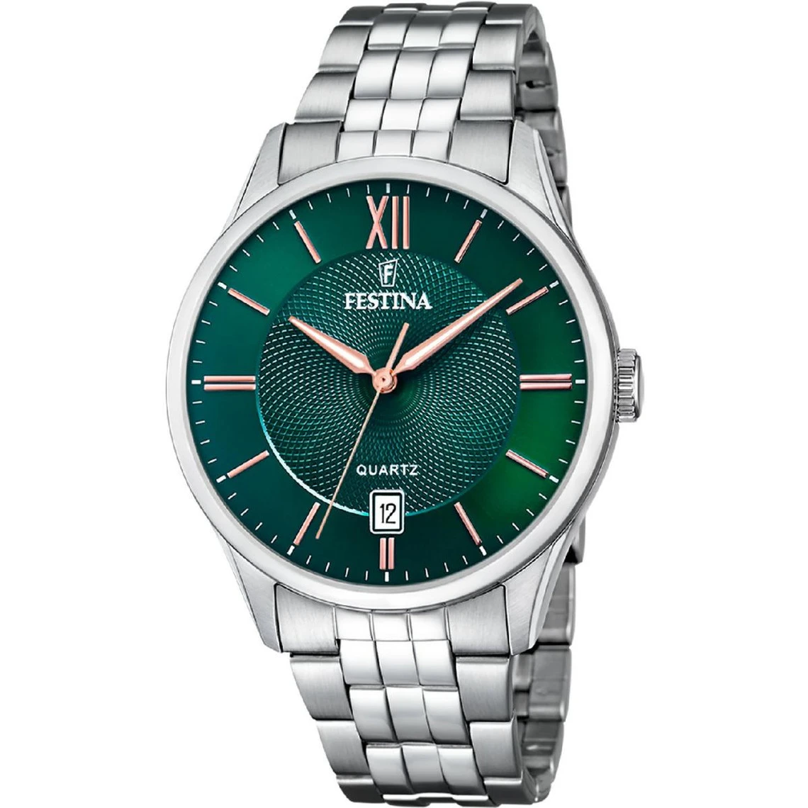 Issue de la collection Classic, la Montre Homme Festina 20425-7 – Bracelet Acier Acier est appréciée pour sa praticité comme sa beauté. Son attrait vient de son cadran vert avec un motif texturé au centre. En acier inoxydable, le boîtier et le bracelet donnent un côté branché à ce modèle.