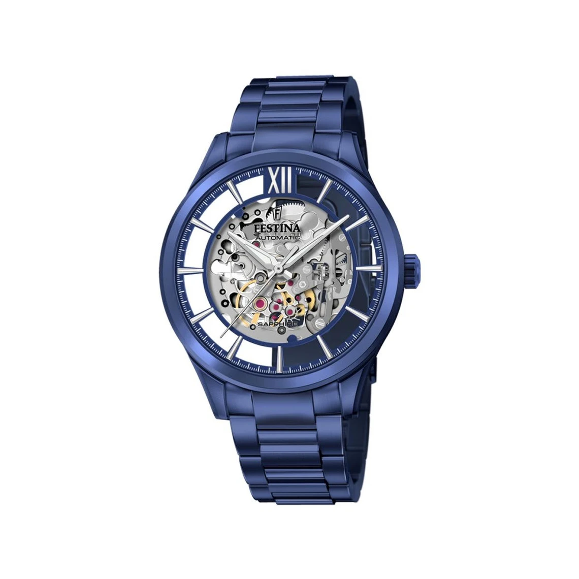 Cette Montre Homme Festina AUTOMATICO F20631-1 – Bracelet Acier Bleu plaît par son design moderne et particulier. Elle se distingue de son cadran circulaire analogique, avec une moitié transparente et une en blanc. Sa couleur fait également son charme par son bleu élégant et brillant.