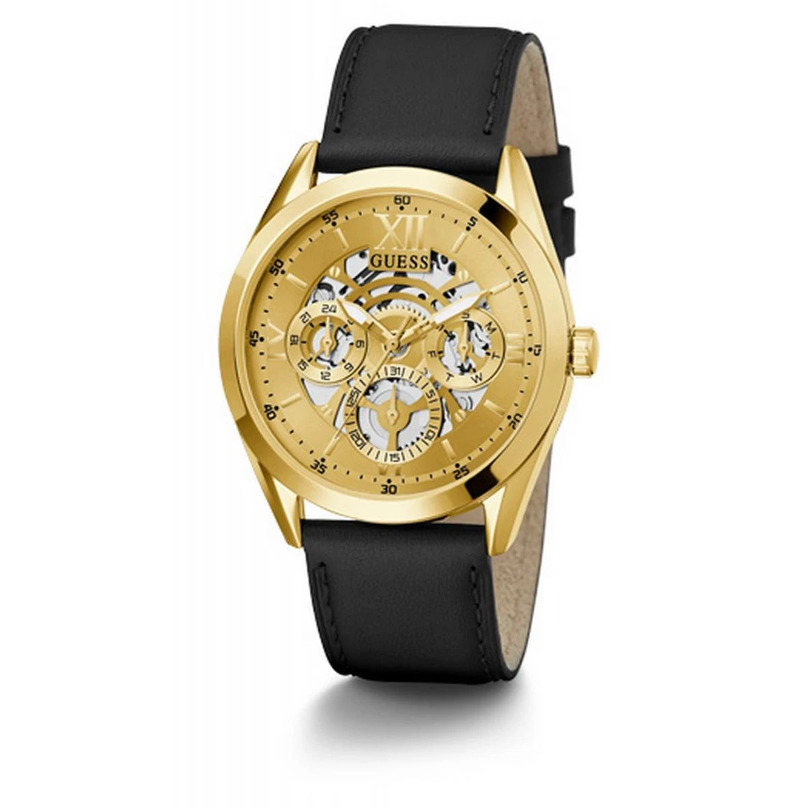 Laissez-vous conquérir par l’élégance de cette Montre Homme Guess GW0389G2 de la collection Mens Dress. Son bracelet en cuir noir offre un port agréable. Son boîtier en acier doré abrite un cadran type squelette. Ces détails combinés en font un accessoire chic idéal pour accompagner vos tenues habillées.
