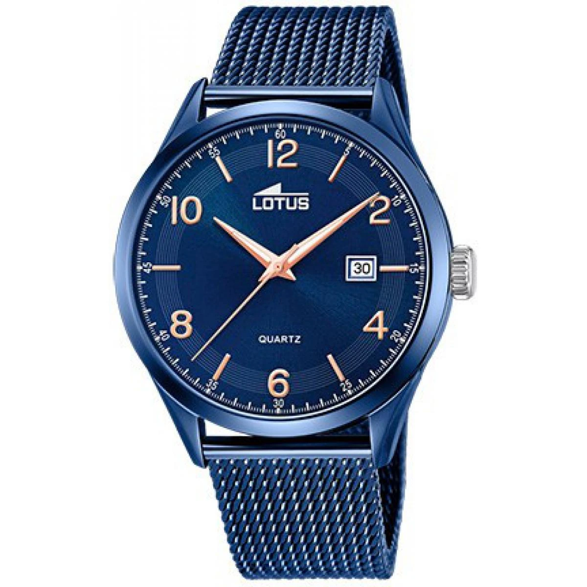 La marque horlogère Lotus va toujours plus loin dans la recherche de nouvelle création. Sa nouvelle collection le démontre, cette montre Lotus pour Homme 18632-1 possède un bracelet élaboré en maille milanaise de couleur bleu, extrêmement souple et agréable au poignet. Il est attaché à un boitier en acier conservant un cadran de couleur assortie. Les index présent sur le cadran sont colorés et accompagne la lecture d’une fonctionnalité Dateur présente à 3h. Une touche de raffinement pour toutes vos sorties.