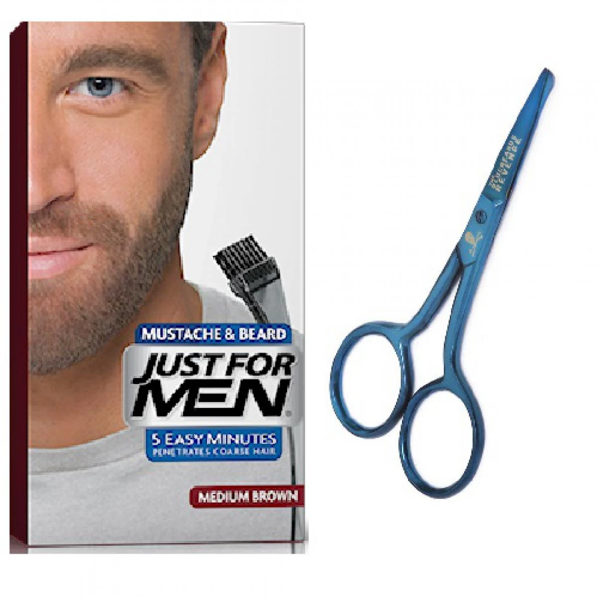 Ce PACK COLORATION BARBE CHATAIN et CISEAUX A BARBES contient des CISEAUX A BARBE de la marque ALPEN. Ils vous permettront d’égaliser la longueur de votre barbe et de votre moustache pour un rendu précis grâce à une coupe de qualité. La COLORATION BARBE CHATAIN de JUST FOR MEN quant à elle s’utilise simplement et agit en 5 minutes pour une tenue longue durée. Sa formule exclusive True Color cible uniquement les poils gris et vous donne une couleur naturelle. Sans ammoniaque, elle respecte vos poils.