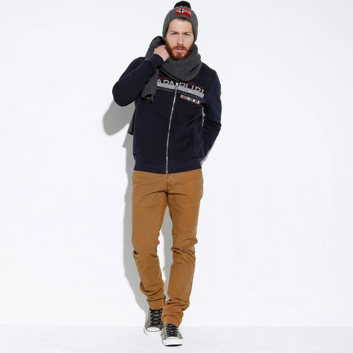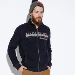 Sweat à manches longues. Fermeture zippée. Poches latérales. Logo Napapijri imprimé sur poitrine.