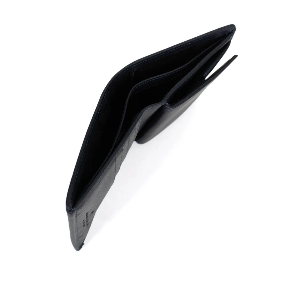 – Intérieur : 1 volet. 1 porte-monnaie à pression. 1 poche plate. 4 emplacements carte. 2 poches billets.