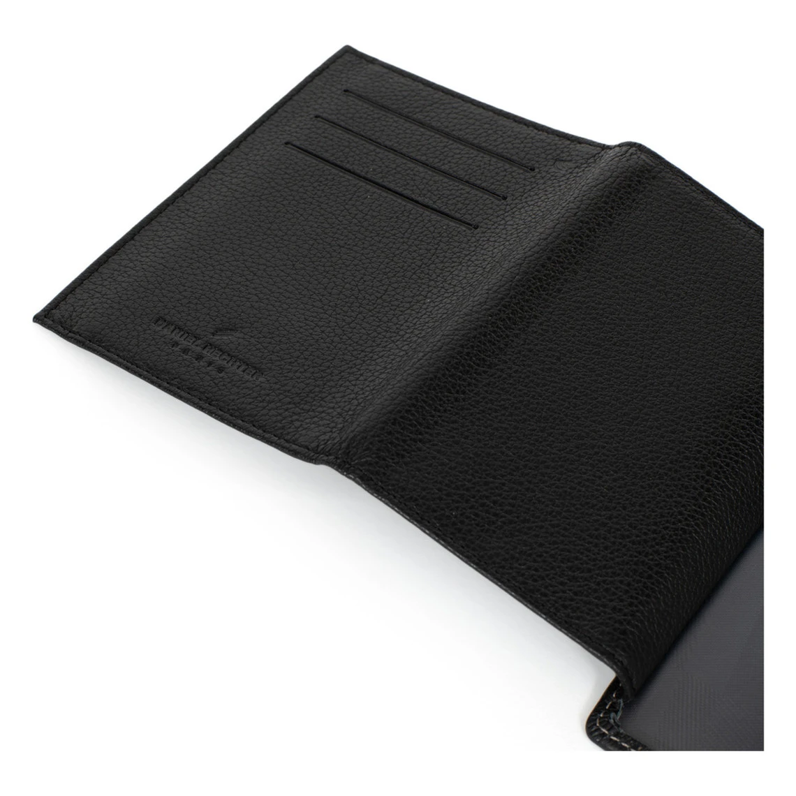 – Intérieur : 3 volets. 6 poches plates (dont 5 à vue transparente). 3 emplacements carte. 1 étui plastique amovible.