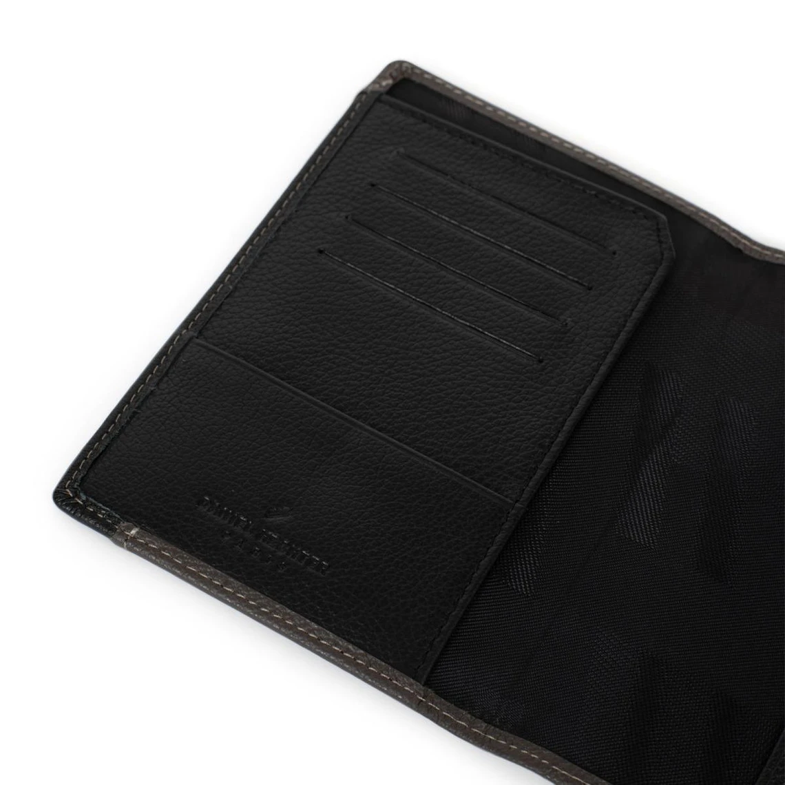 – Intérieur : 1 volet. 1 poche plate. 4 emplacements carte.