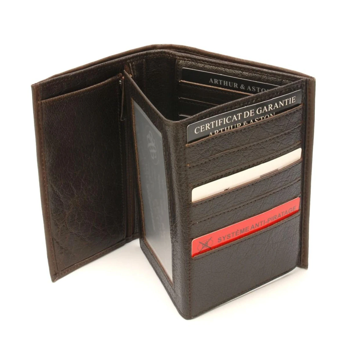 Avec son design chic et sa grande utilité, ce Portefeuille 3 volets Homme cuir marron – Arthur & Aston est indispensable du quotidien. Compartiment à billets, empiècement zippé, poches, étuis pour cartes et emplacements à vue transparente y sont réunis pour ranger vos nécessaires.