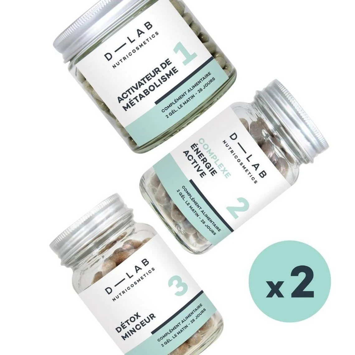 2 gélules de chaque par jour. Privilégier une prise le matin au cours du petit-déjeuner pour éviter que les organes d’élimination, hautement sollicités, ne tournent à vide. Pour l’Activateur de Métabolisme, une gélule le matin au cours du petit-déjeuner et une gélule le midi au moment du déjeuner. En raison de la présence de thé vert, ne pas consommer à jeun. « Pour des effets optimaux, il est conseillé de suivre cette cure 3 mois de suite.