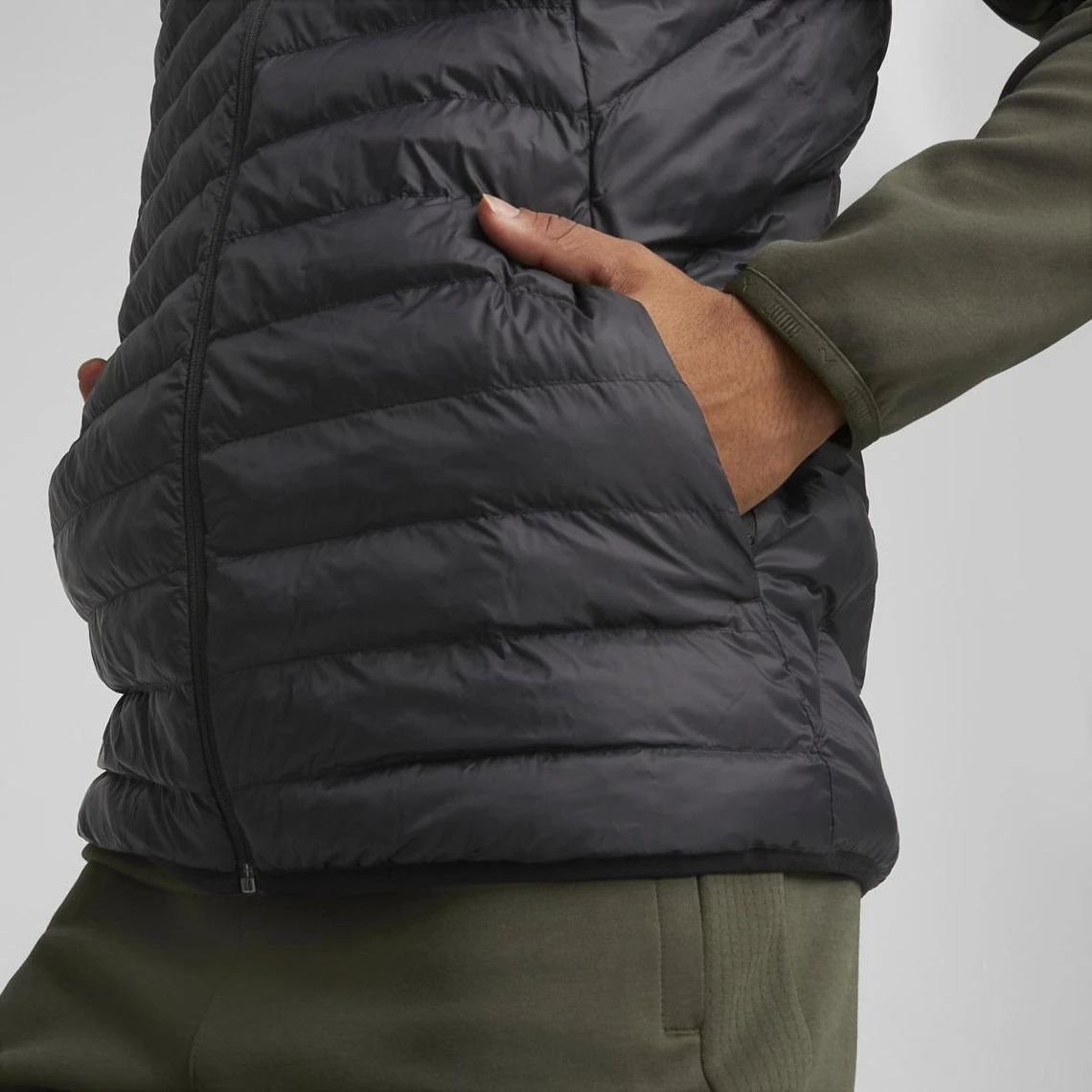- Poche de couture latérale dans laquelle le gilet peut être rangé