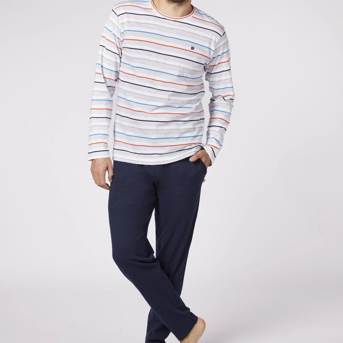Craquez pour le confort supérieur, la grande commodité et le style du Pyjama Long homme – Rayures Colorées / Bleu Marine Uni – Dodo Homewear. Les vêtements qui composent l’ensemble s’ajustent très bien à votre morphologie grâce à leur coupe fluide. Ces pièces fournissent un maximum d’aisance et de praticité. Ils vous garantissent un bien-être accru pendant les saisons fraiches et froides.