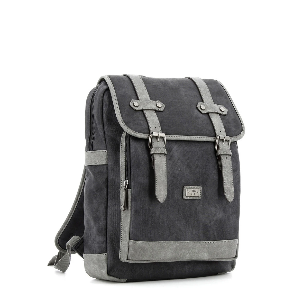 – 1 fermeture à rabat avec 2 pattes réglables aimantées. 1 fermeture zippée à double curseur.