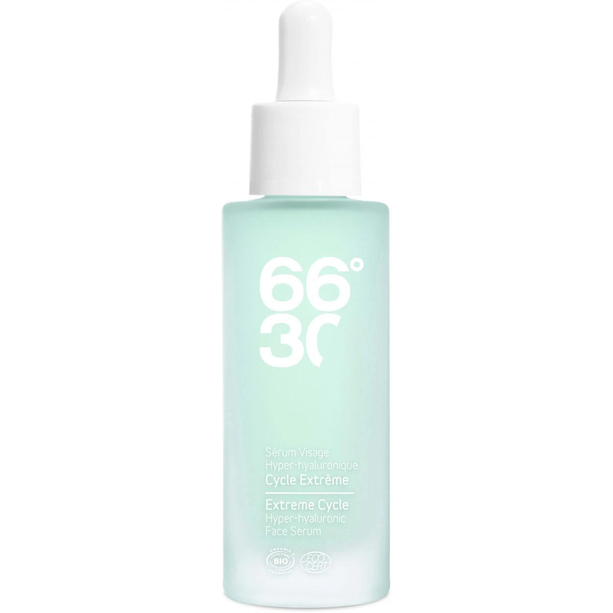 Ce SERUM HYPER HYALURONIQUE CYCLE EXTREME de la marque 66°30 vous permettra de lutter efficacement contre les rides. Concentré en acide hyaluronique bas poids moléculaire, ce sérum revitalise, raffermit et repulpe la peau et lisse les rides. Convient à tous les types de peaux.