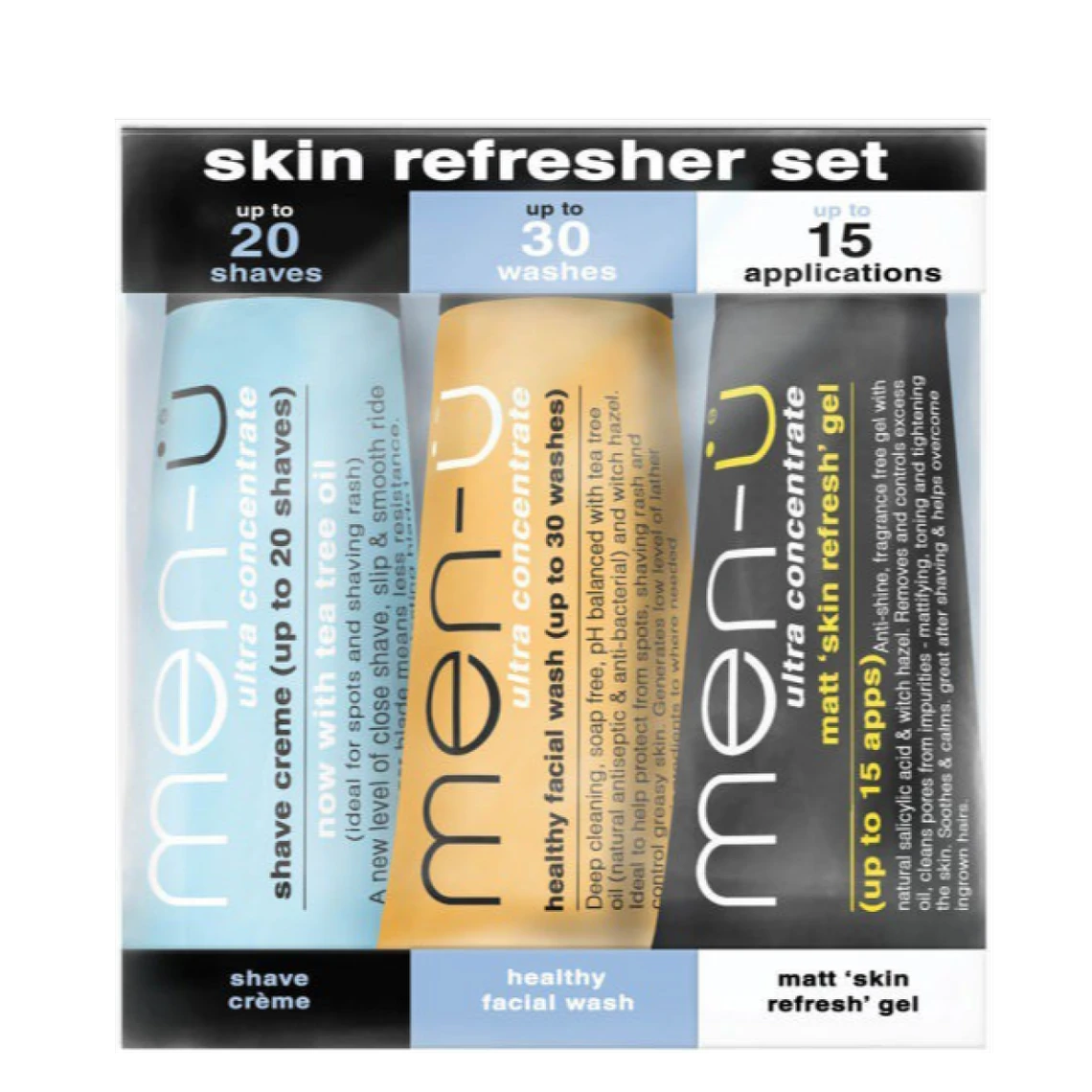 Ce Kit de Soins Visage & Rasage de la marque Men-ü ne combat pas seulement les boutons et les irritations. Il est doté d’un pouvoir d’exfoliation dont rêvent toutes les femmes. Le kit est composé d’une crème à raser, d’une lotion nettoyante et d’un gel hydratant.
