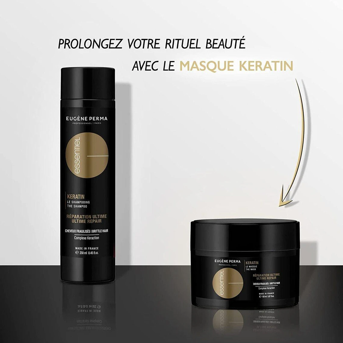Conseils d’utilisation: RĂ©partir le Shampoing Keratin ESSENTIEL sur cheveux mouillĂ©s et masser lĂ©gèrement. Laisser poser pendant 3 minutes. Rincer abondamment.