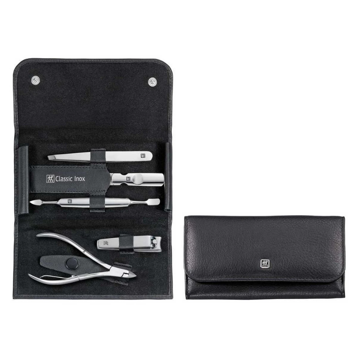 Équipez-vous de l’étui à manucure 5 pièces – Cuir Noir pour un meilleur soin des ongles. Ce kit se compose d’une pince à peau, d’une lime à ongles, d’une pince à épiler, d’un coupe-ongles et d’un instrument double. Ces accessoires sont faciles à utiliser et garantissent un résultat optimal. Comme ils sont conçus en acier inoxydable poli, ils allient qualité et résistance.